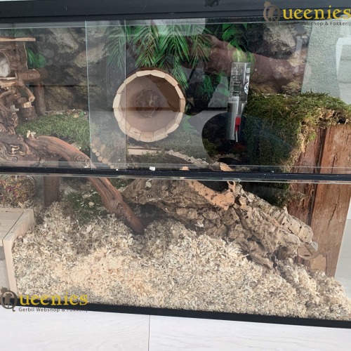 Wanneer u een standaard model Terrarium / Gerbilarium van Queenies heeft adviseren wij de 120x50 te nemen. Deze is dan wel te lang, maar de hoogte is dan wel direct goed op maat.