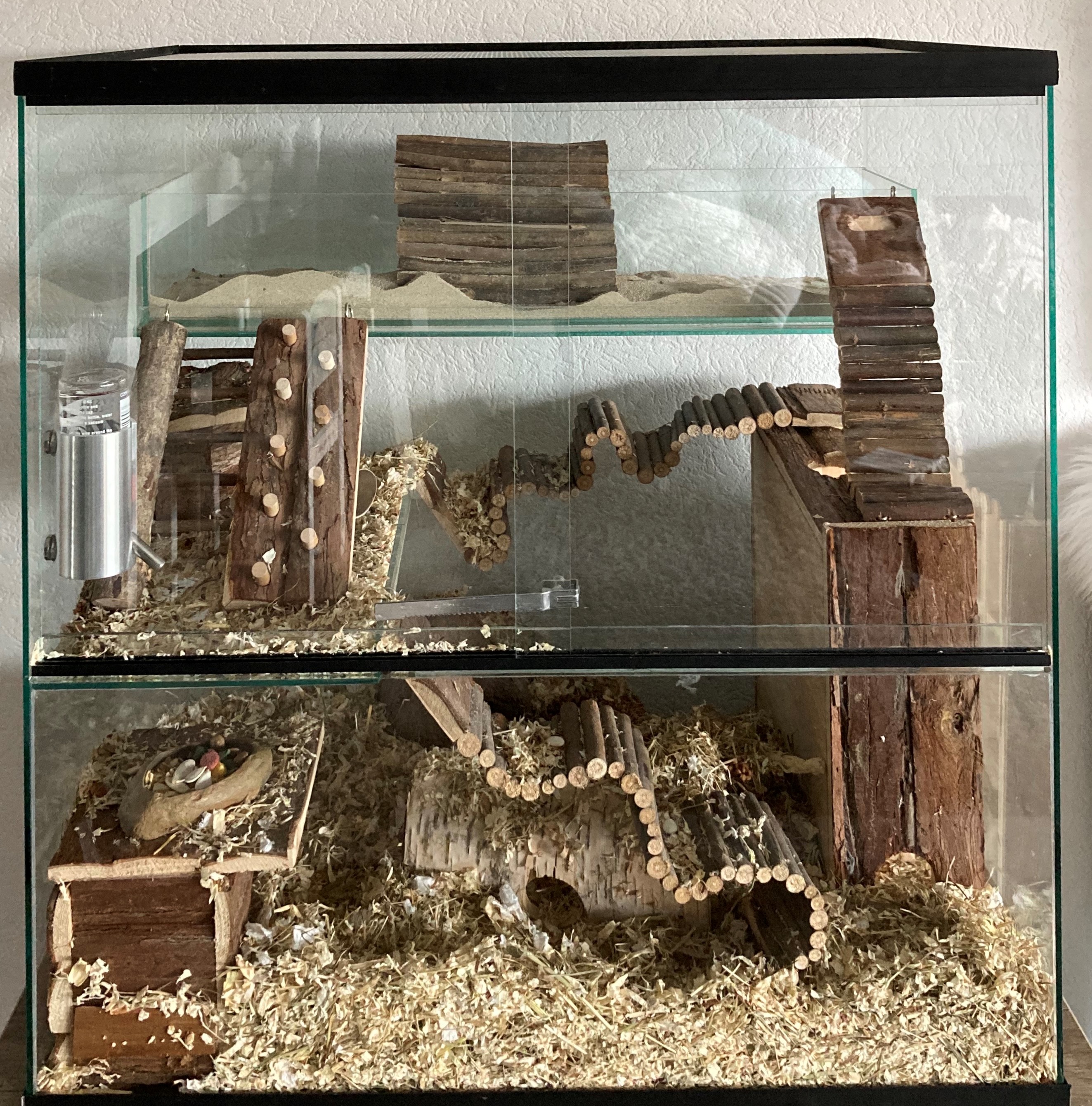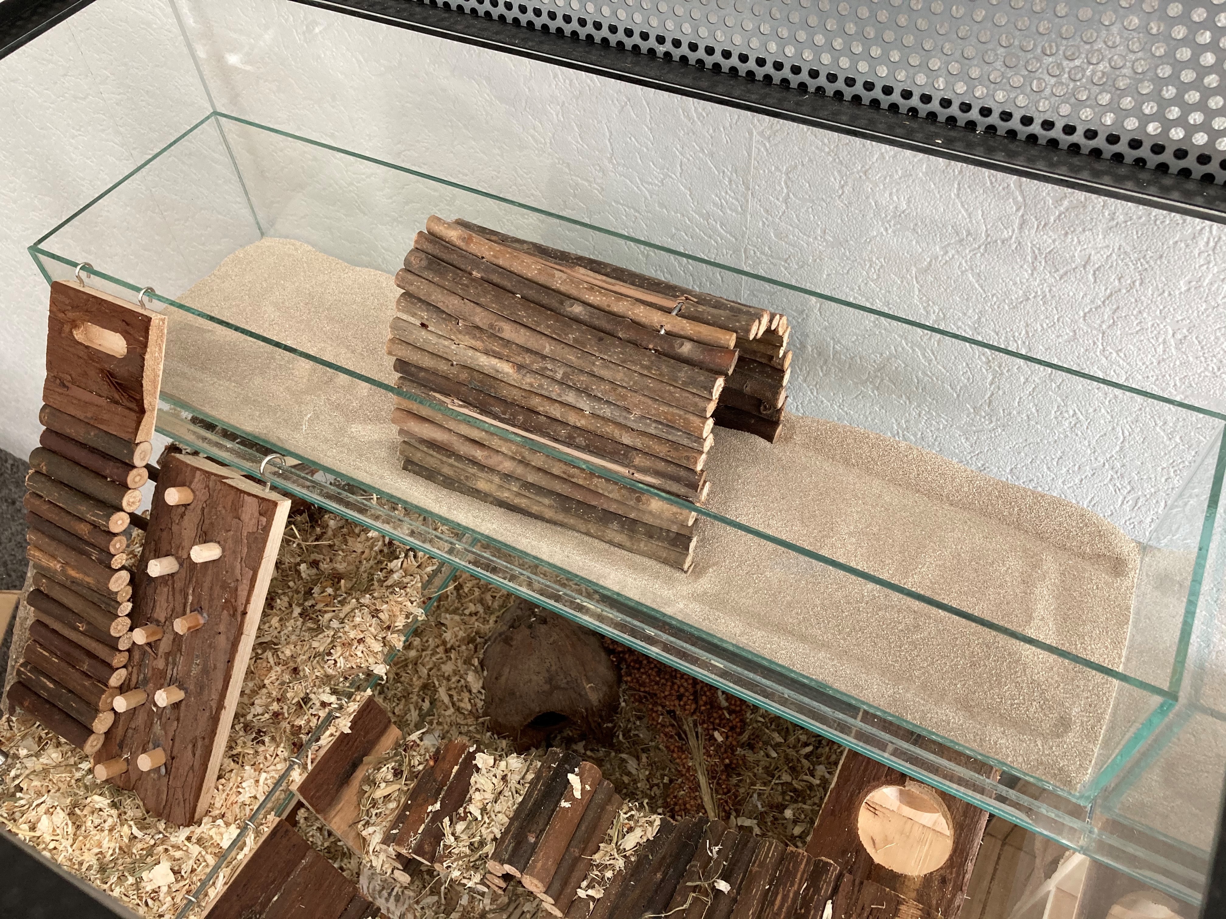 Klant wilde dit graag hebben voor in haar gerbilarium op het lange plateau van het 60x40x60 model Queenies gerbilarium. Uiteraard pas de schaal ook op plateaus die groter zijn dan de 60x40x60, zoals de 75x40x100 of de 120x40x120 En zoals u wellicht allang weet, wij maken alles voor de klant op maat indien gewenst. Omdat wij dit zo'n goed idee vonden, hebben we het ook maar gelijk toegevoegd in ons assortiment.