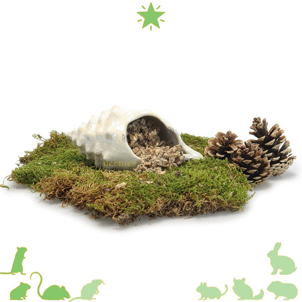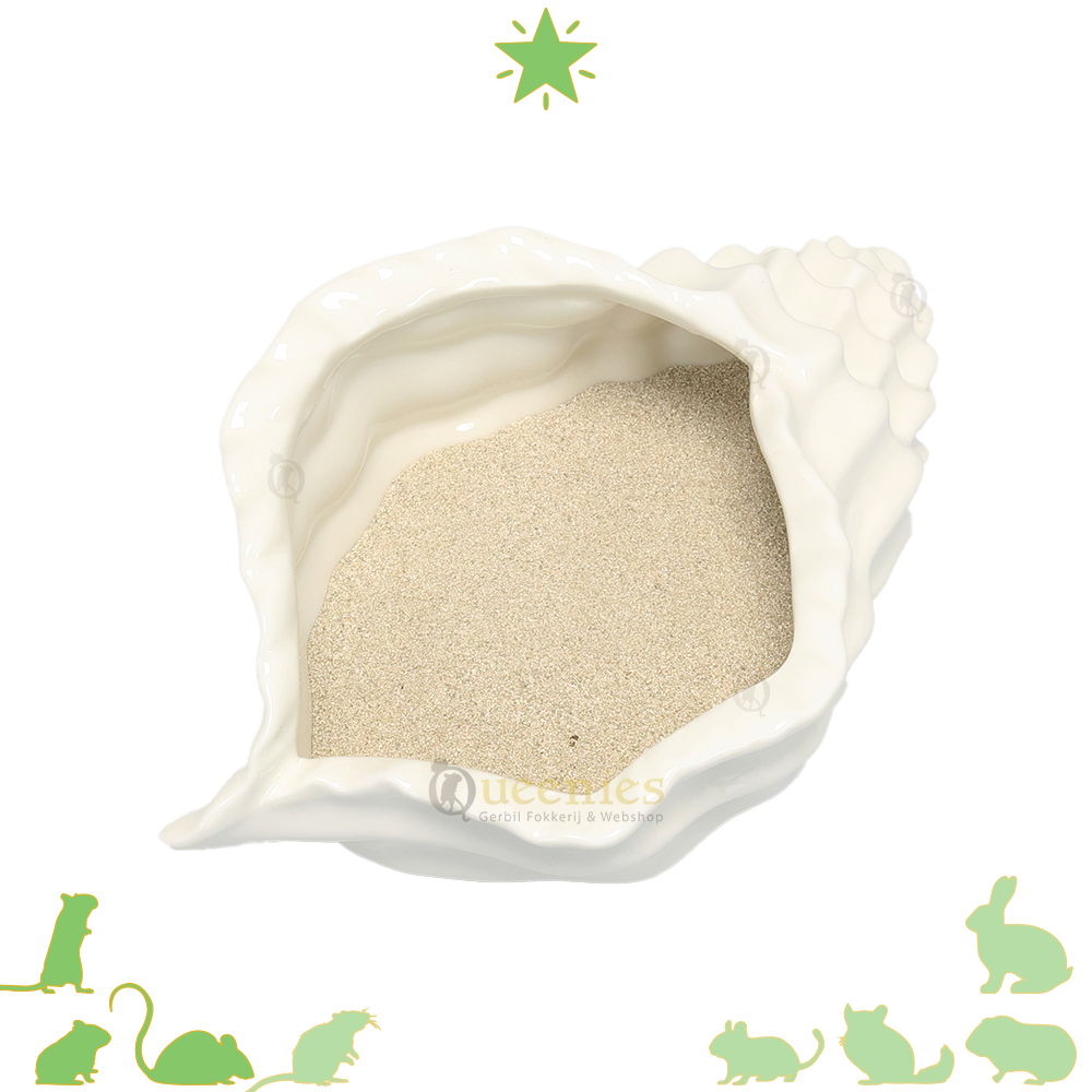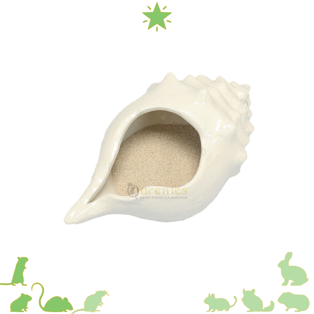 Dit stijlvolle schelp badzandhuisje is niet alleen een fijne plek om in te badderen, maar ook een slimme oplossing voor verkoeling tijdens warme zomerdagen. Vul het huisje met knaagdieren badzand, zet het een paar uur in de koelkast en plaats het daarna in het verblijf van je hamster of gerbil. Dankzij het keramiek blijft het zand langdurig koel, wat zorgt voor een aangename en veilige afkoeling.