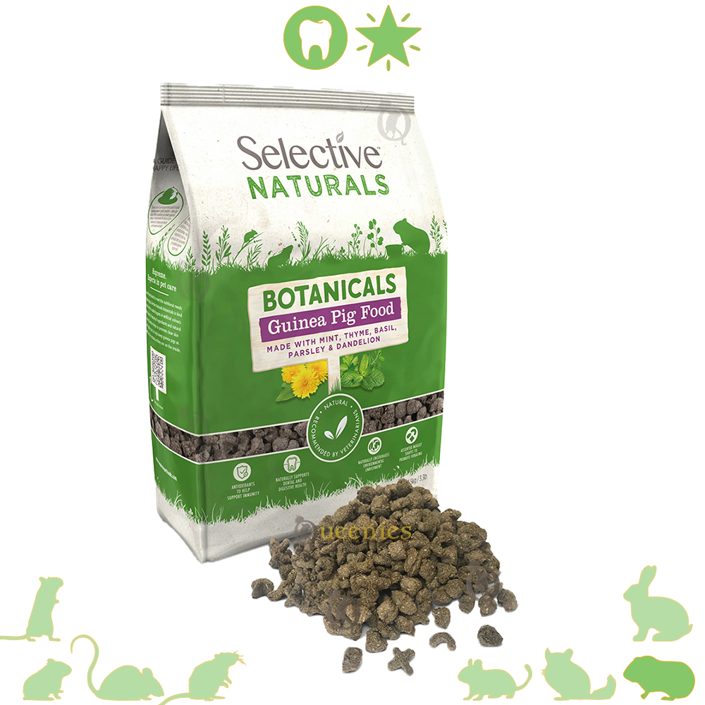 Selective Naturals Botanicals Guinea Pig Food biedt niet alleen een voedzame maaltijd, maar voorkomt ook selectief eetgedrag door Cavia’s. De zorgvuldig samengestelde geëxtrudeerde pellets zorgen ervoor dat jouw cavia alle essentiële voedingsstoffen binnenkrijgt. Met antioxidanten die het immuunsysteem versterken, natuurlijke vezels die tand- en spijsverteringsproblemen voorkomen en een heerlijke smaak die je Cavia zal waarderen, is dit het perfecte voer voor een gezonde en gelukkige cavia.