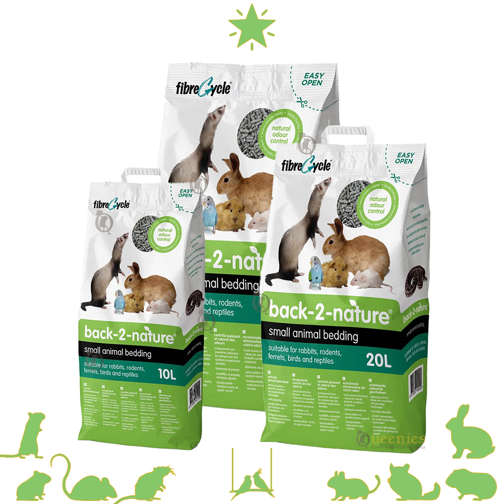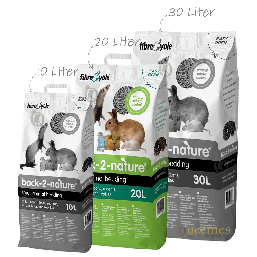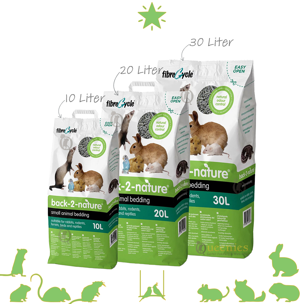 Voor grotere Knaagdieren zoals Ratten, Degoe, Cavia’s, Chinchilla’s en Konijnen, is de Bodembedekking geschikt om heel het verblijf mee te vullen. Ongeveer een laag van 5cm of meer is voldoende. De Knaagdieren en Konijnen kunnen Back 2 Nature ook gebruiken als toiletvulling. Back 2 Nature kan daarom ook uitstekend op de plek worden neergelegd waar de dieren vooral hun behoefde doen. Omdat de Bodembedekking Back 2 Nature gemaakt is van gerecycled papier is het biologisch afbreekbaar. Is bekend dat de Bodembedekking in de groene container weg gegooid kan worden.