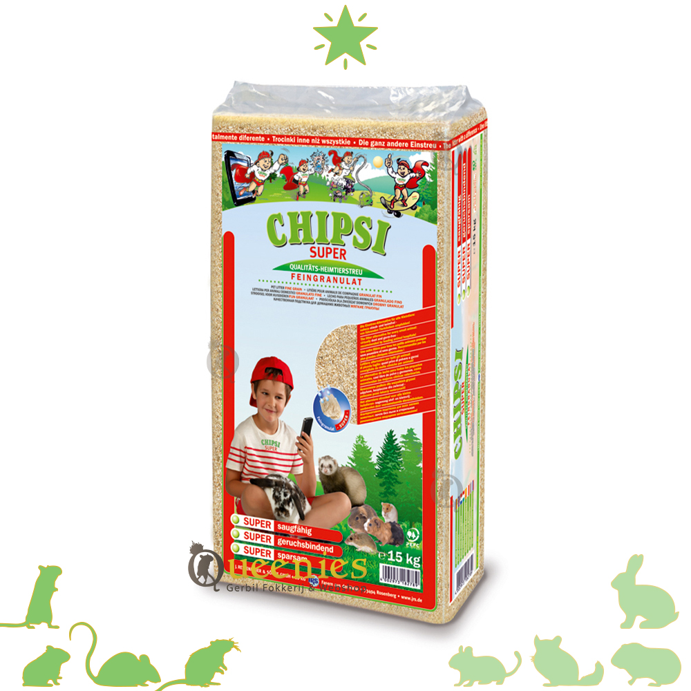Chipsi Super is de oplossing voor allergie gevoelige Gerbils en baasjes! Chipsi Super is getest en aanbevolen door vooraanstaande dierenklinieken. Van zacht hout gemaakt, zeer effectief en super absorberend strooiselproduct. Dankzij een vergroot capillair oppervlak biedt dit strooisel een verbeterde vochtopname en een uitsterst effectieve geurbinding. CHIPSI SUPER is praktisch stof- en bacterievrij en daarom optimaal geschikt voor allergie gevoelige kleine huisdieren.