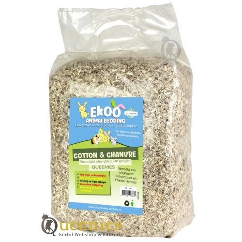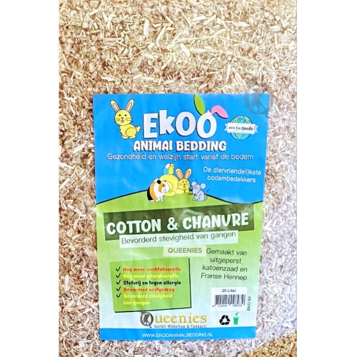 Cotton & Chanvre is eigenlijk vergelijkbaar met Cotton Fibre, maar dan een mix van Hennepvezel en Cotton & Comfort. Bevordert stevigheid van ondergrondse gangenstelsels. Gemaakt van uitgeperst katoenzaad en Franse Hennep. Dit product is volledig vergelijkbaar met wat wij onze klanten altijd adviseren om te gebruiken als bodembedekking bij Gerbils en of Hamsters. Mini Hemp 48 liter gecombineerd met Cotton & Comfort Katoen bodembedekking. Wanneer u liever niet zelf wilt mixen kunt u deze Cotton & Chanvre gebruiken. Deze is direct klaar voor gebruik.