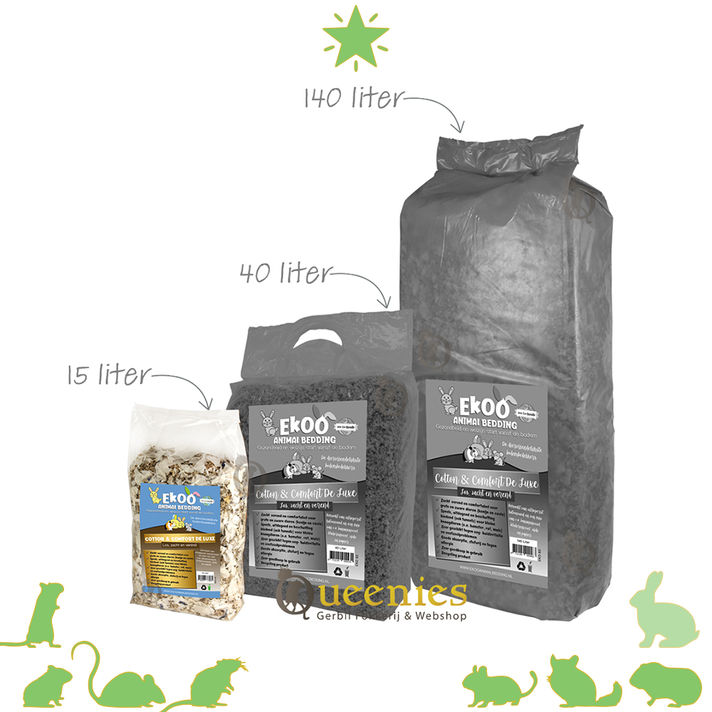 De Cotton & Comfort Deluxe bodembedekking van Ekoo is een los, zacht en verende bodembedekking. Geweldig voor de kleine knaagdieren. Dit is voor hen een puur festijn. Voor cavia’s en hun verzorgers is deze bedding een beetje dubbel. Het product absorbeert perfect maar het is binnen een paar dagen duidelijk zichtbaar vanwege de lichte kleur. Hieraan kunt u wel gemakkelijk herkennen waar de vieze plekken zijn om die te vervangen. Andere bodembedekkers zijn meer gemaleerd waardoor de mate van vervuiling minder zichtbaar is. Verder een heerlijk zacht nestmateriaal voor kitten en puppies. De bedding is heerlijk zacht en daardoor een genot voor uw Knaagdier om in te gaan liggen.