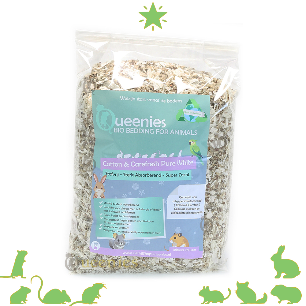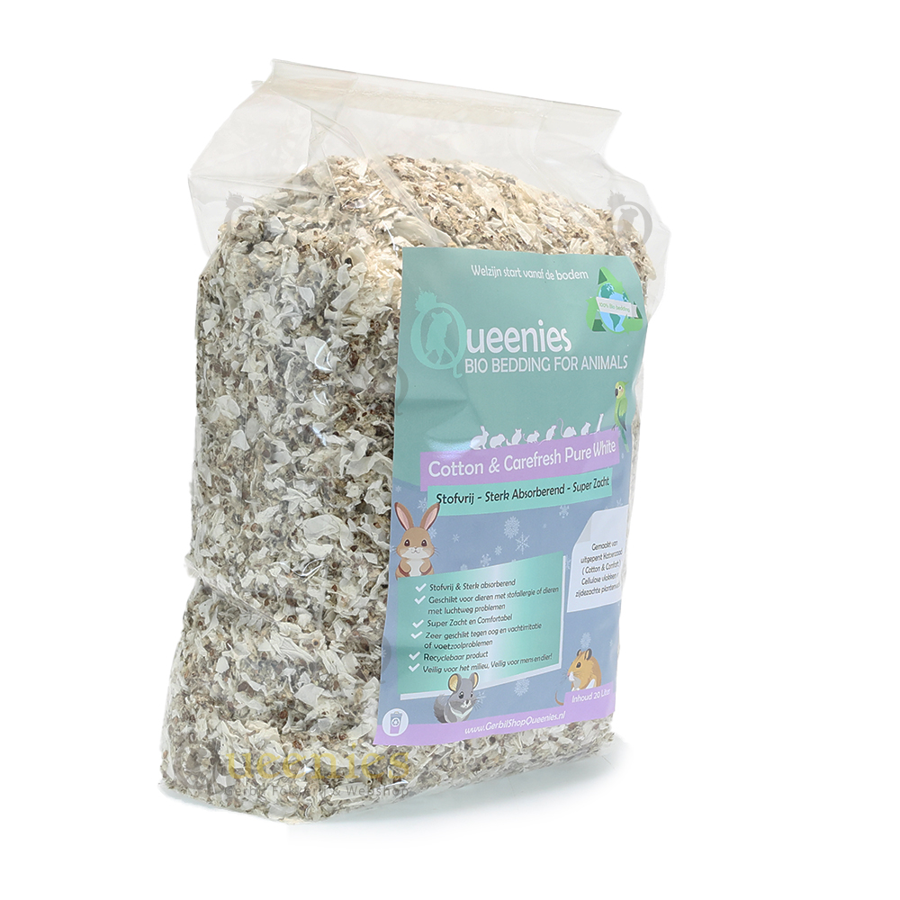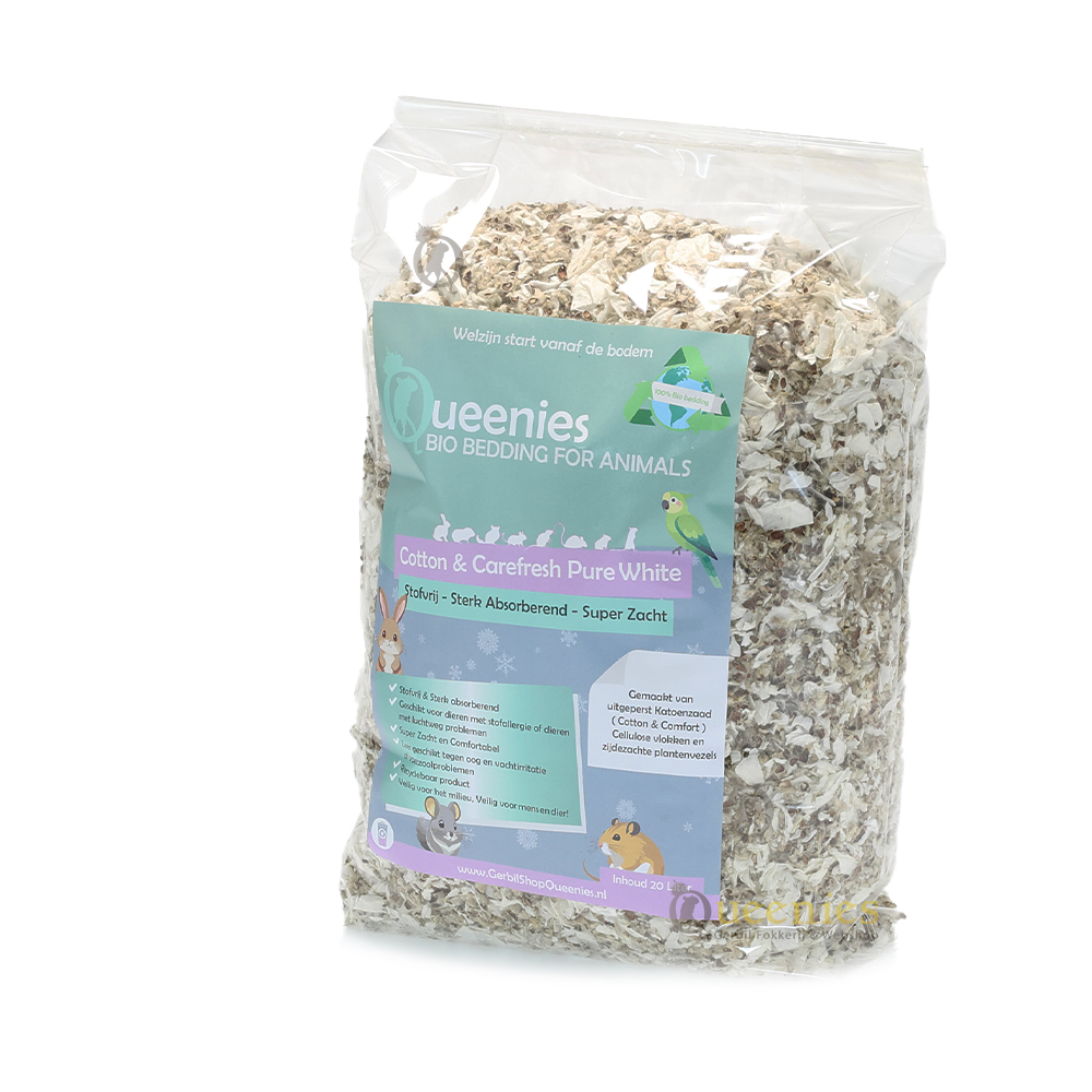 Dit comfortabele strooisel gemaakt van cellulose-vezels is volledig onschadelijk en bevordert de gezondheid van uw huisdier. Het creëert een beschermde omgeving voor uw Gerbils, Hamster, Rat of Muis, waar schadelijke bacteriën geen kans krijgen zich te ontwikkelen. Bovendien zorgt Cotton Carefresh Pure White ervoor dat er geen irritatie van de luchtwegen optreedt, zoals hoesten of geïrriteerde slijmvliezen.