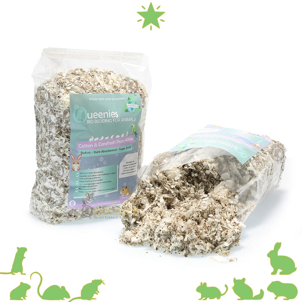 Onze Cotton Carefresh is de beste keuze voor eigenaren die niet alleen zorg dragen voor de gezondheid van hun Knaagdier of Konijn, maar ook waarde hechten aan een aantrekkelijke leefomgeving met comfort en hygiëne. Of u nu de voorkeur geeft aan de natuurlijke uitstraling om een serene sfeer te creëren of kiest voor de kleurrijke Confetti om het verblijf van uw huisdier op te fleuren, alle varianten staan garant voor een Stofvrije, comfortabele, en stimulerende bodembedekking voor Knaagdieren. Laat uw Cavia, Konijn, Rat, Gerbil, Hamster of Muis genieten van de superieure zachtheid en het hoge absorptievermogen, terwijl u als eigenaar geniet van de gemakken. Want met deze Cotton Carefresh blijft de kooi langer schoon!