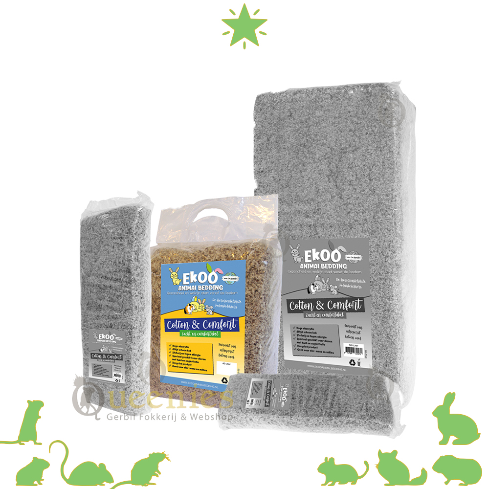 - Rianne: Voor mij is dit de beste bodembedekking. Stuift niet zo veel als andere bodembedekkingen, ruikt prettig en duurzaam in gebruik. De gerbil kan in het verblijft mooie gangen maken in het katoen en is er dan ook gek op. Ik heb Cotton Comfort al op meerdere websites besteld maar gerbilshopqueenies blijft het goedkoopste.