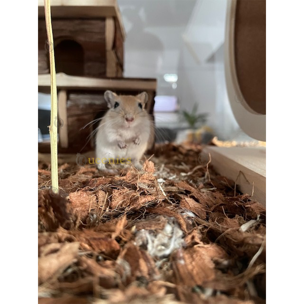 - Carmen: Super fijn materiaal om te gebruiken op de plateau's het geeft een mooie natuurlijke uitstraling. Daarnaast levert het veel knaag en uitpluis plezier op voor de gerbils. Want veel dingen van deze exotic kokos gebruiken ze ook voor hun nestje.