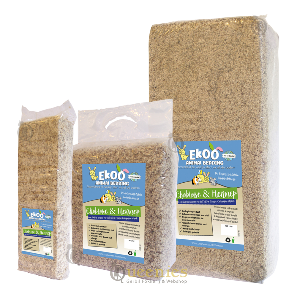 Ekobiose en Hennep is een stofvrij Hennep product uit de Champagne streek. Deze Franse Hennep onderscheidt zich van Nederlandse Mini Hemp. Dit komt omdat de binnenkant van het Hennepstrengel gebruikt wordt voor dit product, het beste van het beste is dus weg weggelegd voor deze Ekobiose, het restmateriaal wordt gebruikt voor de Nederlandse Mini Hemp. Dit product is ook erg geschikt voor dieren met een allergie vanwege het stofvrije gehalte van deze Hennep. Het product is stofarm en voor dieren met gevoelige luchtwegen, zoals Ratten, is dit erg belangrijk. Andere Hennep product zijn over het algemeen stoffiger en hebben niet deze mooi lichte kleur van de Franse Hennep uit de Champagne streek.