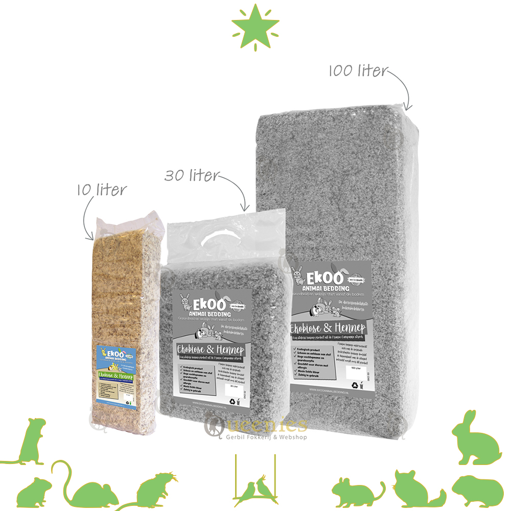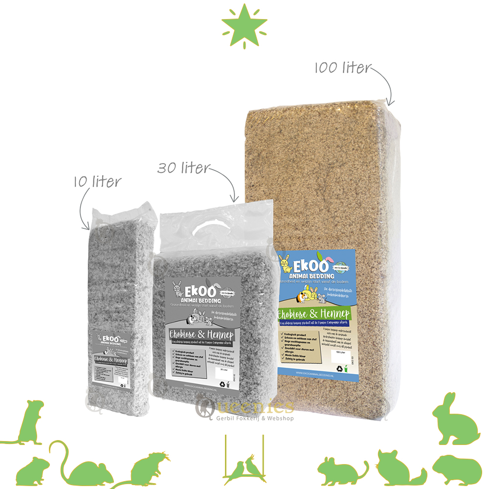 Breng een laag van 2 a 3 cm aan op de bodem. Zorg dat dit goed verspreid wordt door het Terrarium zodat het overal gelijk is. Voor Konijnen is het aangeraden om een extra laag aan de brengen waar Konijnen hun ontlasting doen. Het Ekobiose Hennep product heeft ook een hoge vochtopnamen en geurabsorptie, waardoor het niet alleen voor Knaagdieren en Konijnen fijn is in hun dagelijkse leefomgeving maar ook voor ons. Door het goede absorptievermogen komen er minder nare geurtjes vanaf.
