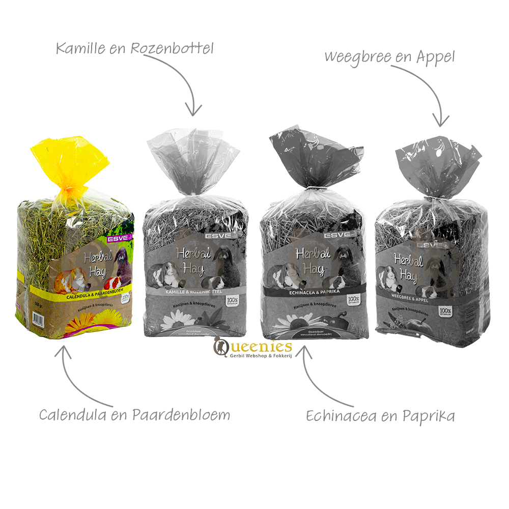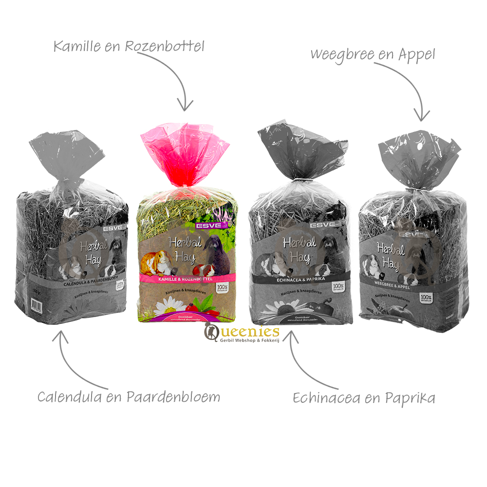 Zorg er dus voor dat uw Knaagdier of Konijn dagelijks toegang heeft tot voldoende vers hooi en water om in topconditie te blijven. Topconditie lees je af aan een gezond dier met een glanzende vacht en heldere ogen. Hooi is de olie van het Knaagdierenhart, Herbal Kruidenhooi in alle verschillende varianten biedt de perfecte mix van voeding, mineralen en verrijking om Gerbils en andere Knaagdieren of Konijnen tevreden en gezond te houden.