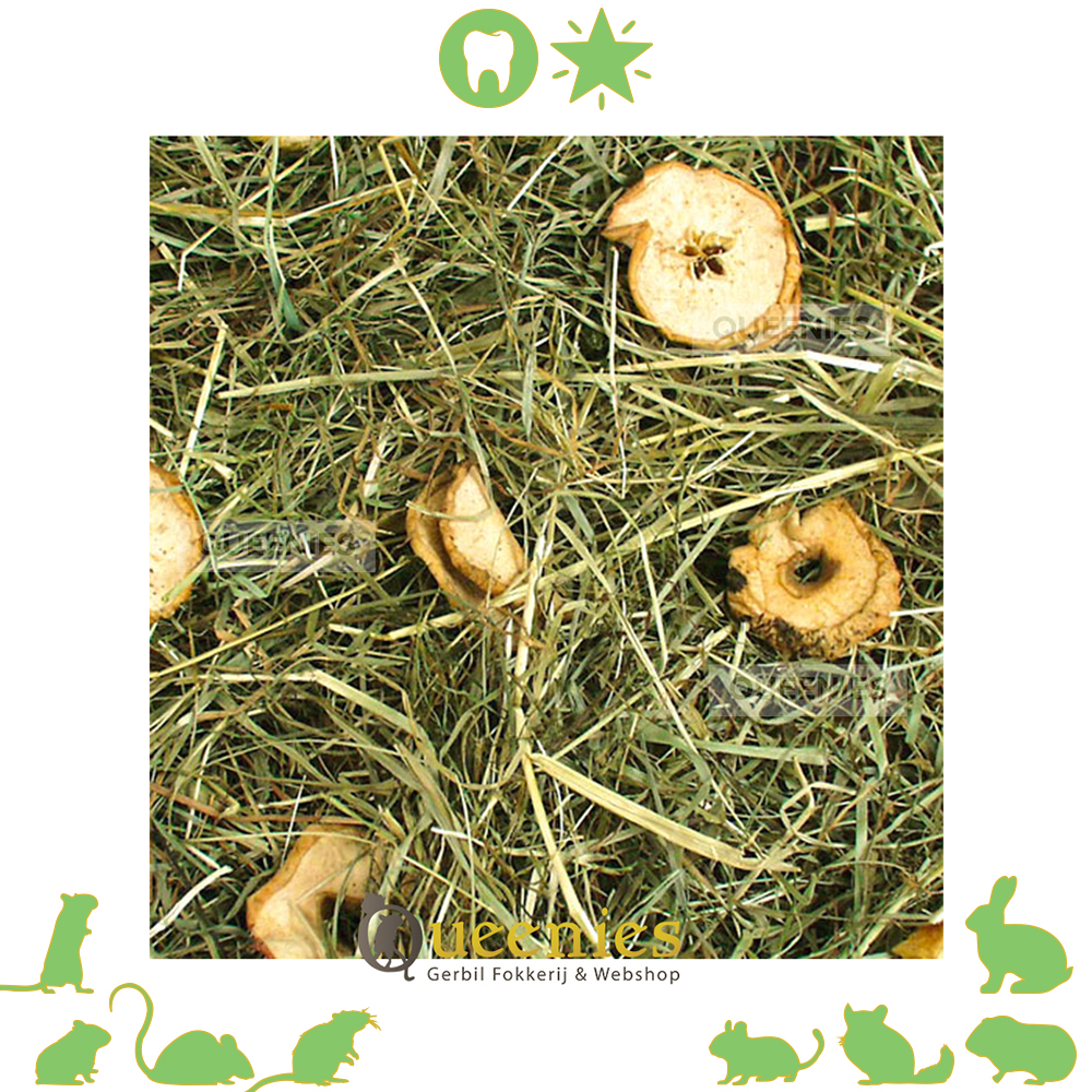 Het hooi is verrijkt met gezonde gedroogde appels, dit is een knaagdieren snack die iedere Gerbil heerlijke vind, een snack zoals ieder knaagdier het zal wensen!