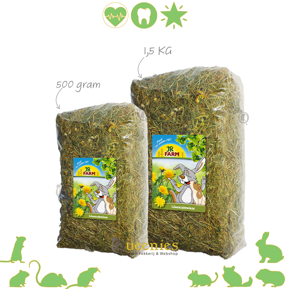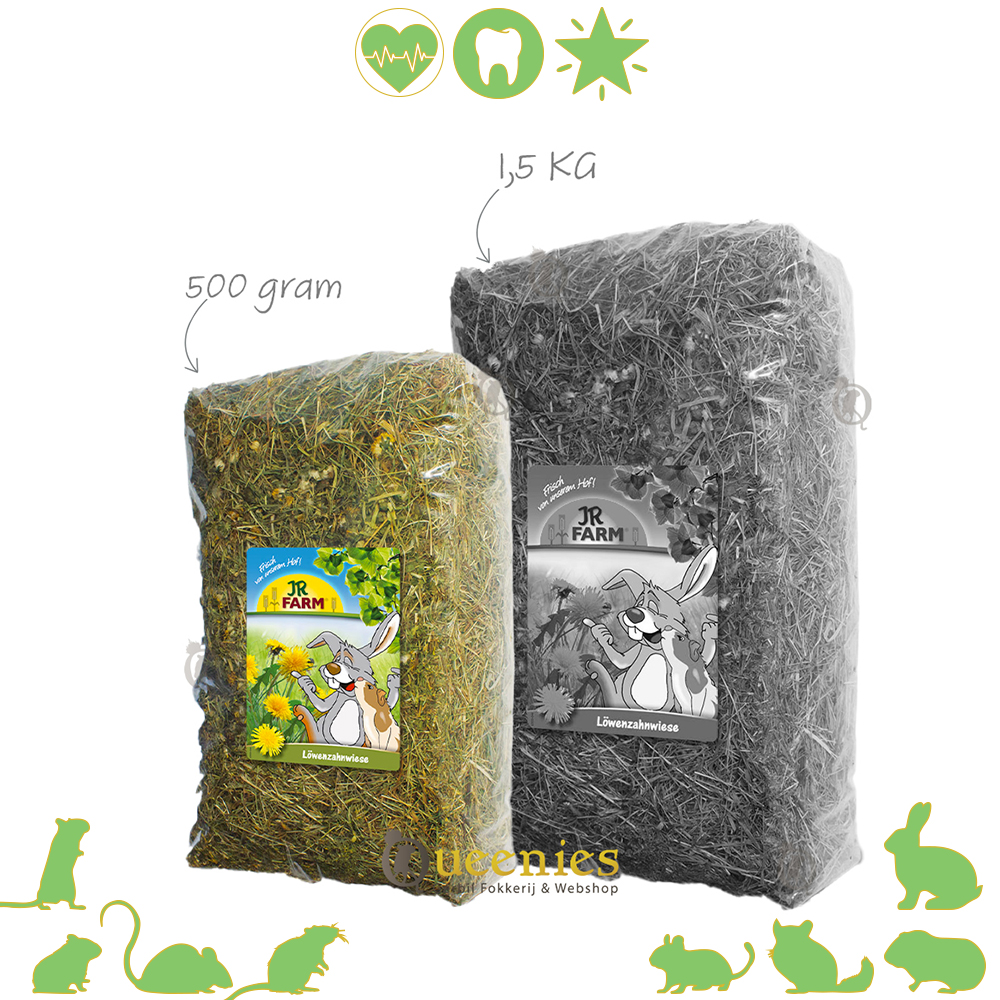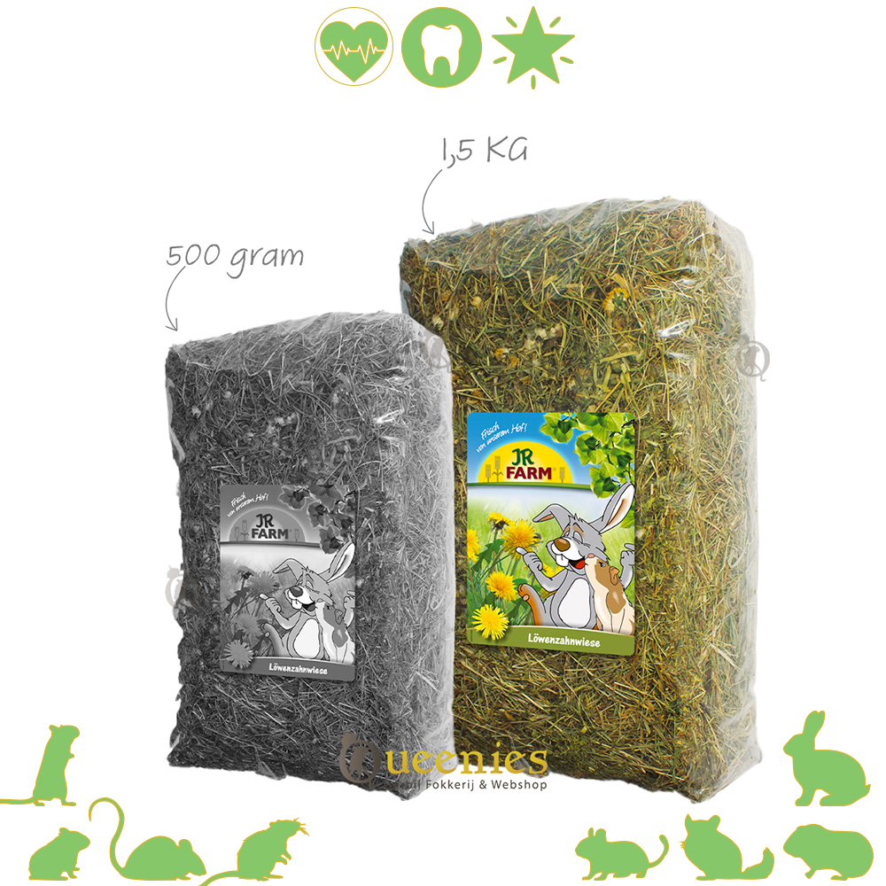 Het JR Farm Paardenbloem Weidehooi is hooi met Gedroogde Paardenbloemen voor Konijnen en Knaagdieren. Stelt u zich voor om uw geliefde Knaagdier of Konijn zou trakteren op de heerlijke smaak van geurige Paardenbloemen terwijl ze genieten van hoogwaardig hooi die hun gezondheid ten goede komt!. Met JR Farm Paardenboem WeideHooi is deze droom werkelijkheid geworden. Dit premium hooi is zorgvuldig verpakt en bevat talloze gedroogde Paardenbloemen waardoor het een onweerstaanbare traktatie is voor iedere Gerbil of ander Knaagdier en Konijn