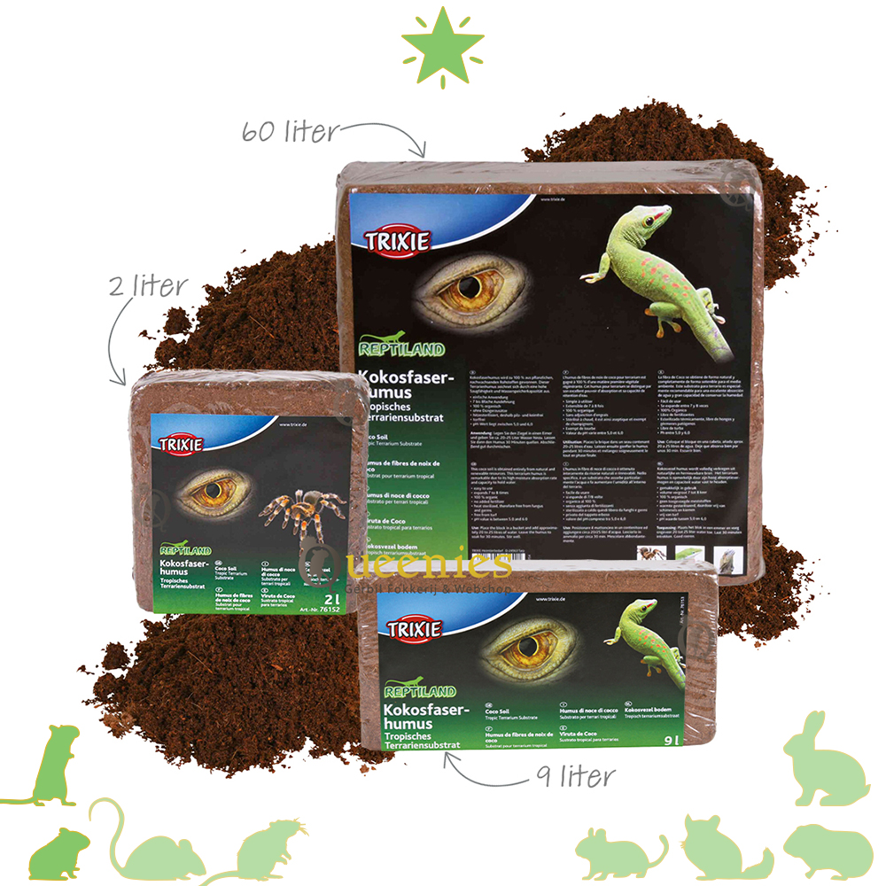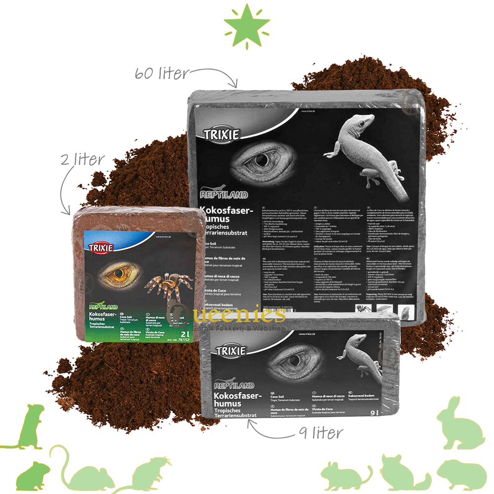 De Kokosvezel-Humus is een mengeling van Kokosvezel en Humus. Deze natuurlijke bodembedekker is geschikt voor kleine knaagdieren en bevorderd het natuurlijke graaf gedrag van de dieren. De bodembedekker kan uitzetten tot het 7- tot 8-voudige van zichzelf, heeft een pH waarde tussen 5,0 en 6,0, is hitte behandeld daardoor schimmel- en kiemvrij en zonder toevoeging van meststoffen.