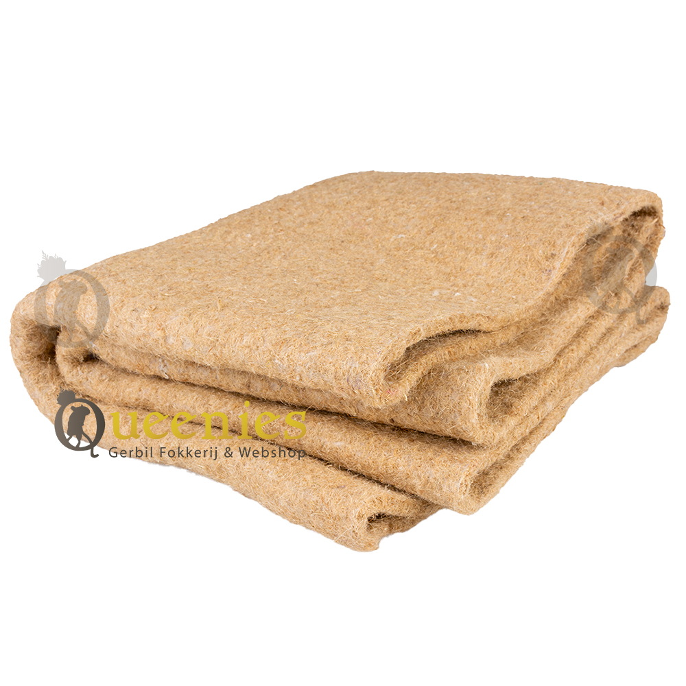 De Mini-Hemp soft matras is ook heel geschikt als nestmateriaal. Erg leuk om te zien en ook nog eens extra bezigheid voor de dieren! Vooral Gerbils en Hamsters kunnen hier erg leuk mee aan de slag gaan. Knip een stukje van de hennep mat af en leg deze in het verblijf. De hamsters zullen het snel meenemen naar hun nestje en helemaal verpluizen totdat er een nestje ontstaat.