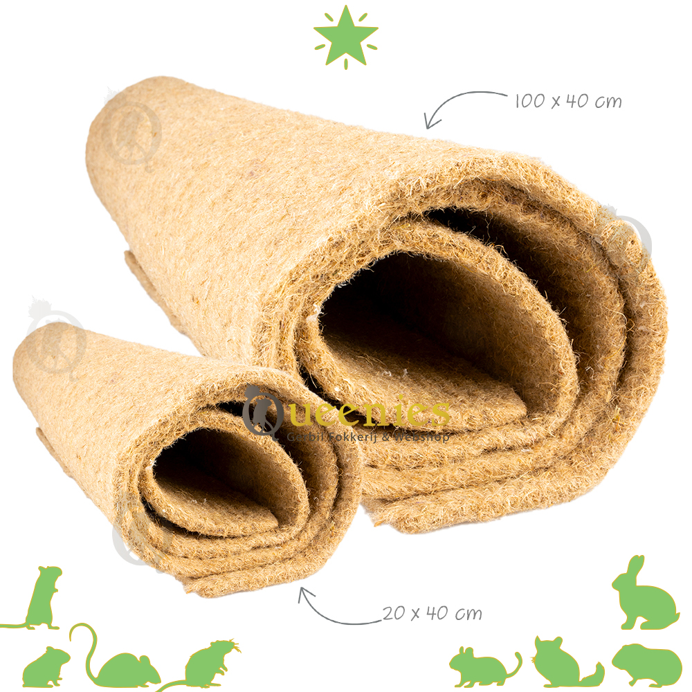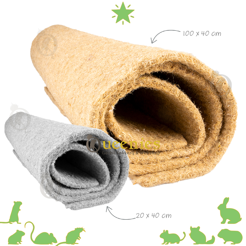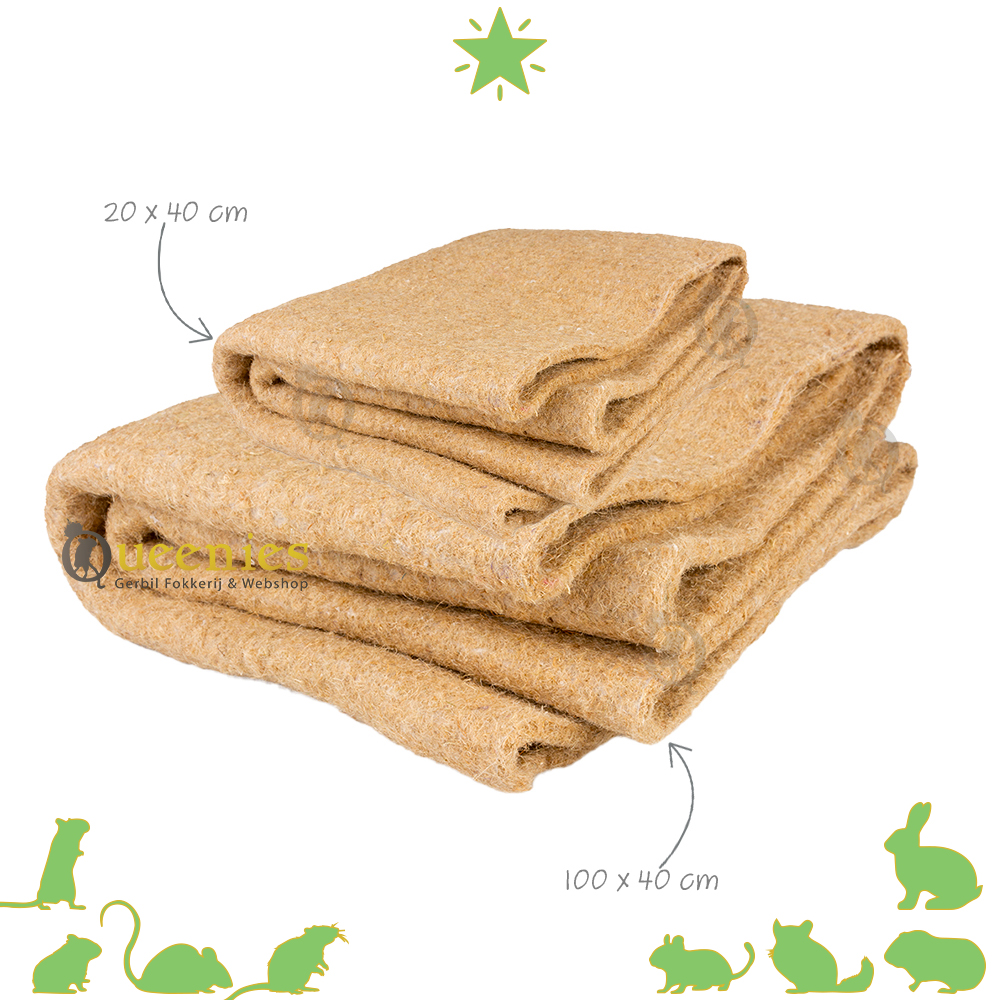 Mini-Hemp soft matrassen bestaan uit onbehandelde hennepvezels. Daardoor is het product hygienisch en uitermate geschikt voor het bouwen van een nest en als bodembedekking voor uw Gerbilarium. Deze 'bodembedekking' bedoelen we letterlijk een bodem bedekking mee. Dus geen zaagsel maar een deketje die op de bodem ligt of op het plateau. Bij Gerbils zal het in de praktijk enkel op een plateau liggen zodat de Gerbils hun behoefte gaan doen in het badzand en niet op de glazen plateaus. Bij Ratten en cavia's is dit product fantastisch voor alles waarover deze dieren heen lopen aan grond of plateaus. Doordat deze dieren overal urineren zal de urine opgevangen en geabsorbeerd worden door het Soft Matras. Deze kunt u eenvoudig en gemakkelijk vervangen waardoor de kooi weer snel schoon is en er geen nare geurtjes overblijven. Ook zijn deze matten volledig stofvrij wat zeer positief is voor de luchtwegen van de gevoelige Rat. Uw Gerbils kunnen hun eigen nestmateriaal uit het matras halen om zo hun nestjes te bouwen, de vlassige matten zorgen direct voor de tandverzorging van de Gerbils. Deze zinvolle dagbesteding geeft extra levensvreugde en of belangrijke hygiene.