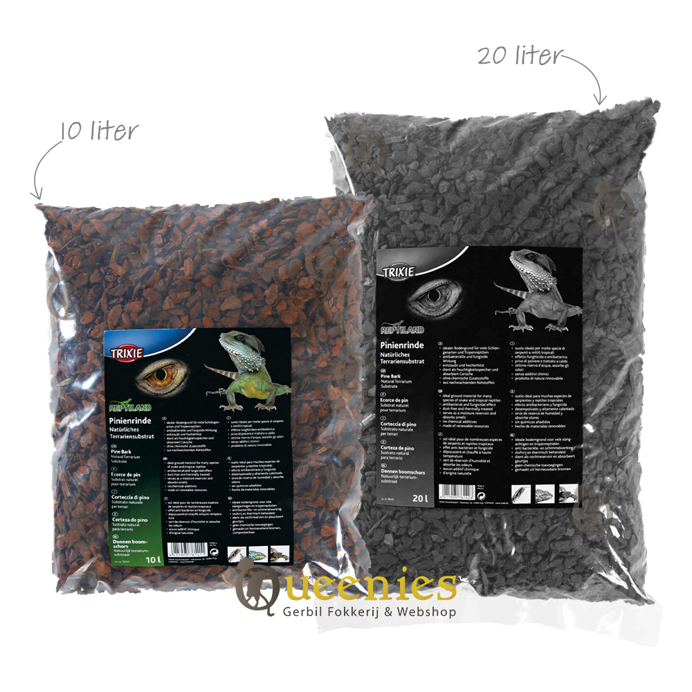 Pijnboomschors geeft een erg natuur getrouwe uitstraling wat ook niet stoft. Het is volledig stofvrij gemaakt, ook bevat het product geen chemische toevoegingen. Schors is hoog absorberend en houdt het vocht goed vast. Daarnaast heeft dit dennenschors een antibacteriele werking bij terrariumdieren. Vanwege de vele verschillende afmetingen die dit schors heeft oogt het bovendien aantrekkelijk bij een natuurlijk ingericht verblijf voor reptielen of knaagdieren.