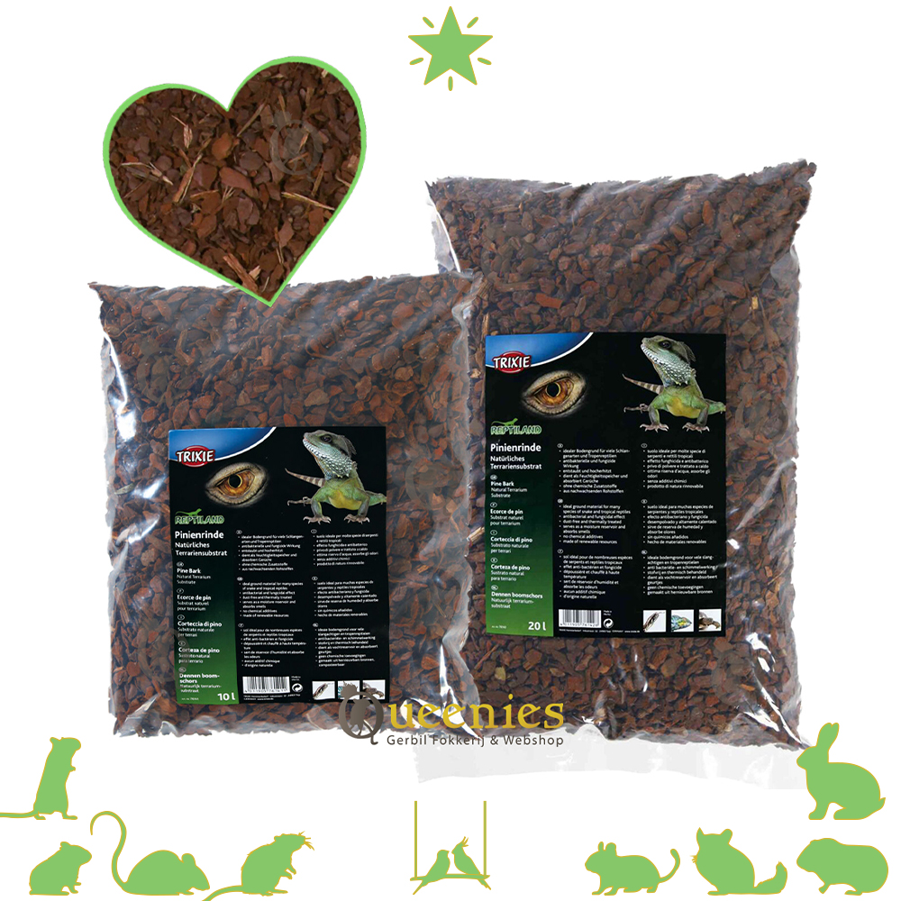 Dit pijnboomschors wordt doorgaans gebruikt en verkocht voor mensen met reptielen zoals Slangen en hagedissen, maar wij vinden het voor knaagdieren ook een hele mooie en fijne grondbedekker. Wellicht niet als enkelvoudige bodembedekking, maar toch zeker wel voor delen van het knaagdieren terrarium. Een mooie afscheiding kan gemaakt worden met wilgenbruggen of buigzame ladders. Het schors oogt ook weer erg natuurlijk. Dit product leent zich bijvoorbeeld ook uitstekend voor het maken van bospadden in een scaping. De natuur getrouwe uitstraling is iets wat wij altijd nastreven als het gaat om de inrichting van Gerbils of Hamsters. Bij Gerbils noemen we dit 'Gerbilscaping' en bij Hamsters heet het Hamsterscaping.