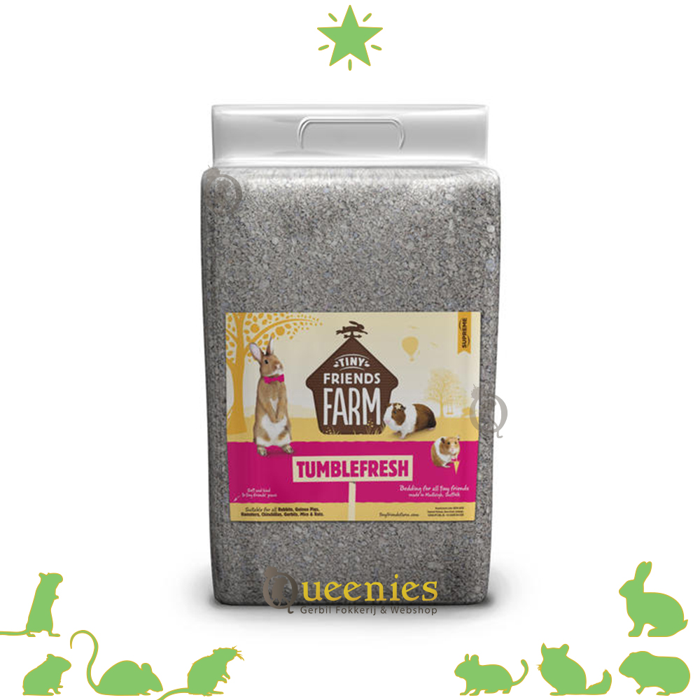 Tumblefresh Bedding 17 liter Vermindert nare geurtjes, absorbeert 250%, houdt het hok langdurig fris, makkelijk te verwijderen, zacht en hypoallergeen, milieuvriendelijk.Ook is het stofvrij en hypo-allergeen en is daardoor zeer geschikt als uw huisdier een soort van allergie heeft. Het is veilig en hygiënisch en is met hitte behandeld om bacteriën en schimmels te verwijderen.Vanwege deze voordelen worden het veelal gebruik door dierenartsen voor dieren die bijkomen en herstellen van een behandeling of operatie.