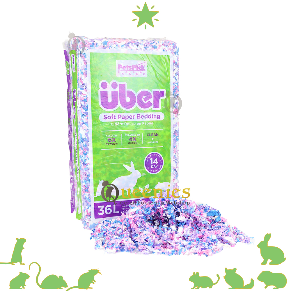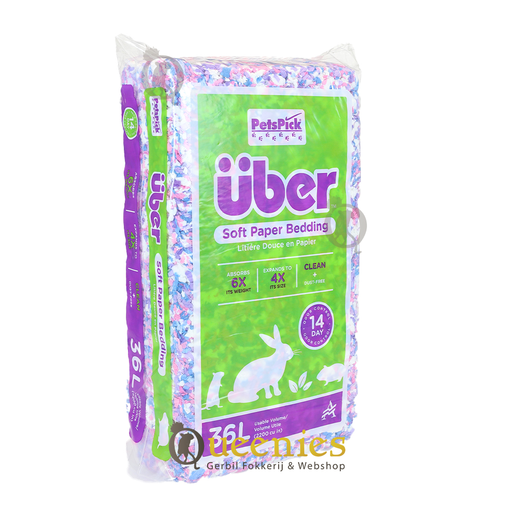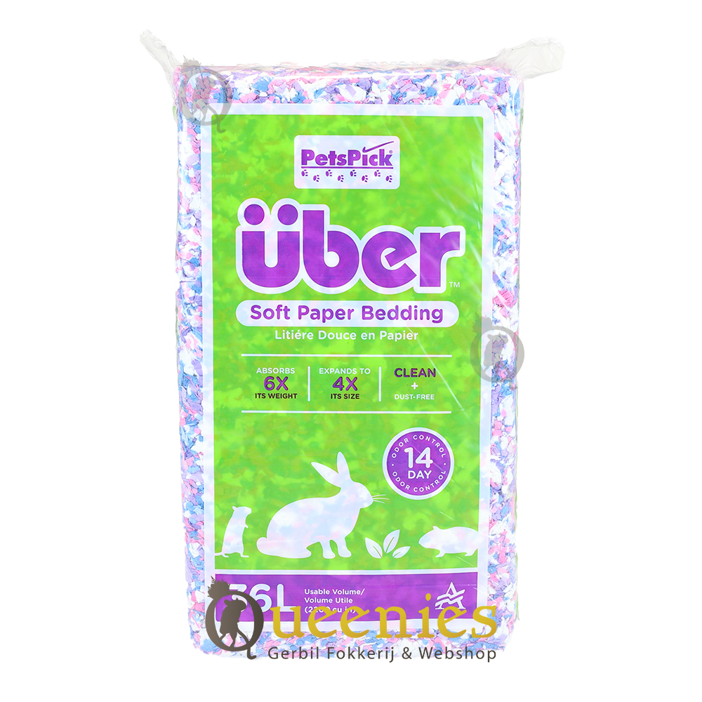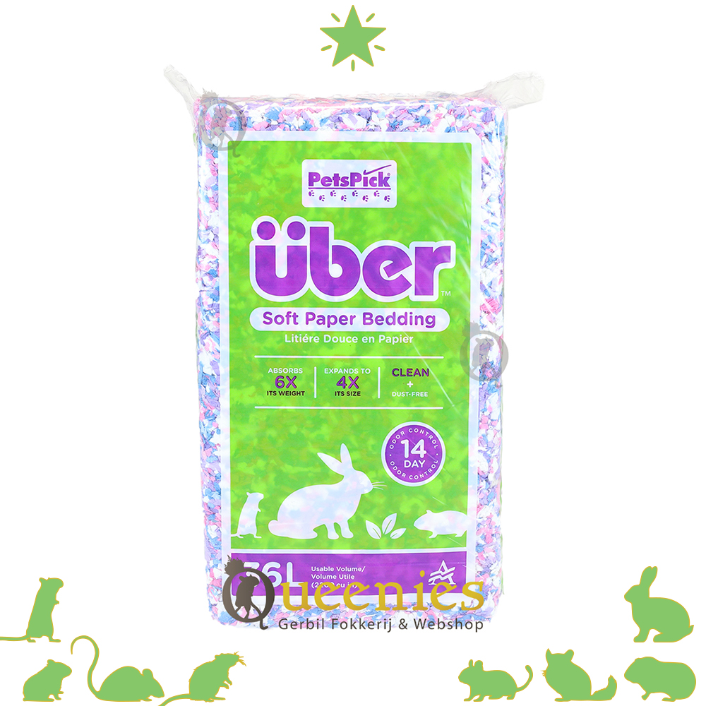 Met deze leuk gekleurde en super trendy zachte papieren celloze vezels ( cellulose ) als bodembedekker frist en fleurt u het verblijf van u Gerbils of Hamster op. Zowel voor het oog als ook qua hygiene. Doordat Uber Carefresh tot 6x zijn eigen gewicht kan opnemen aan vocht zal uw Terarrium / Gerbilarium altijd schoon blijven door de goede absorbatie.