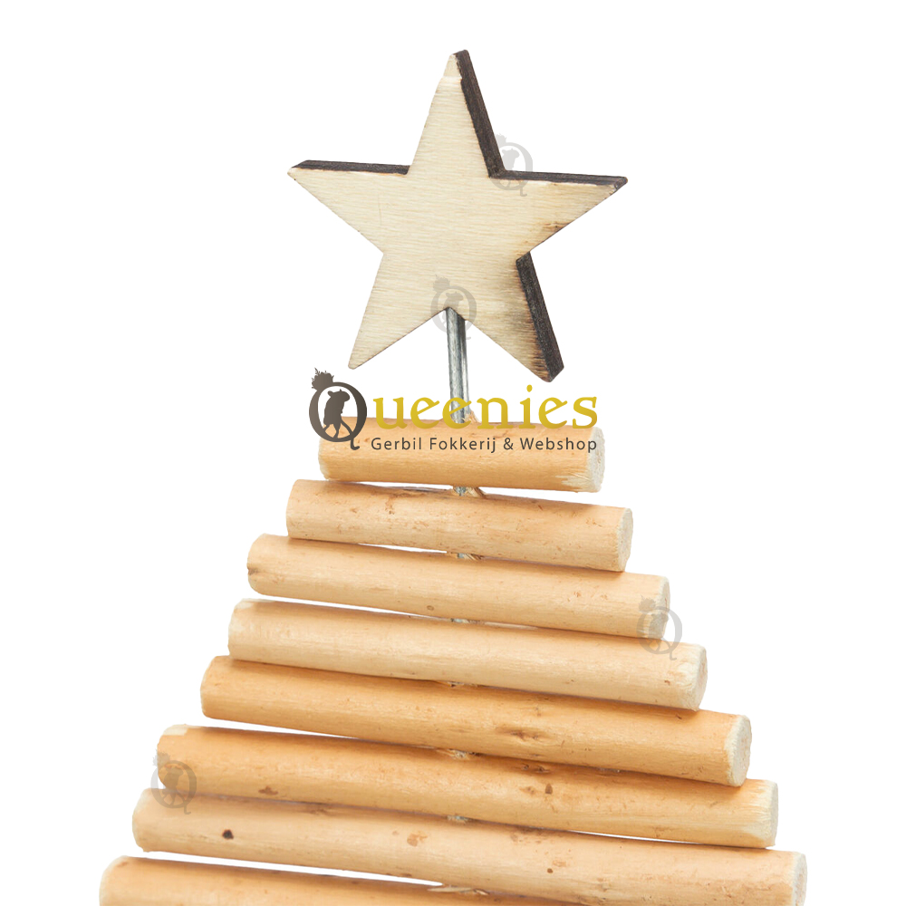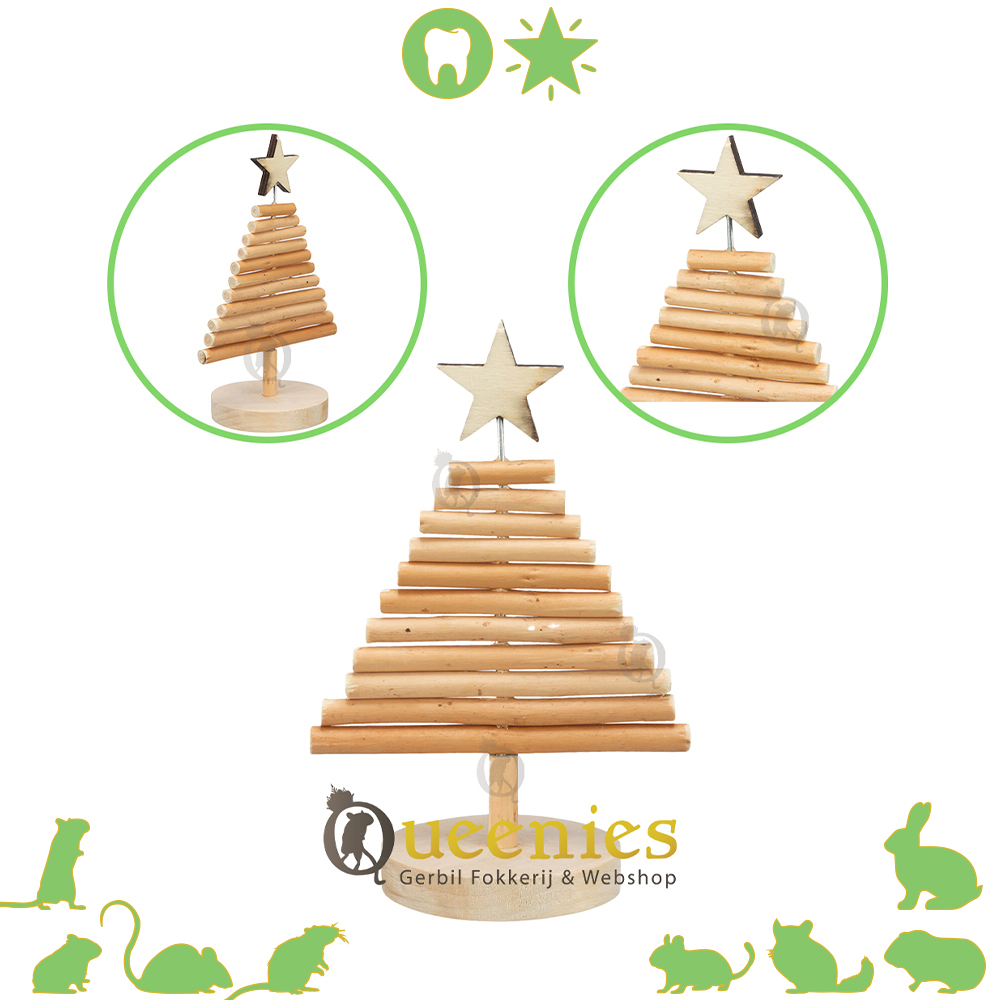 Breng de feestdagen naar het Terrarium van de Knaagdieren met de Kerstboom met Piek, ook te gebruiken als een houten knaagboom, maar hopelijk pas na kerst zodat deze Houten Kerstboom ook de feestdagen overleven bij onze knaaggrage knaagdieren. Dit unieke speeltje is niet alleen een prachtige decoratie, maar biedt ook een veilige en gezonde manier voor je knaagdier om te knagen. De lagen van de boom zijn op een speelse manier opgebouwd en stimuleren zowel beweging als knaagplezier, terwijl de houten ster bovenop de boom een feestelijk tintje geeft aan elk verblijf.