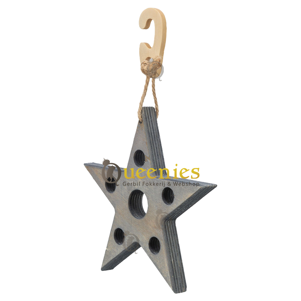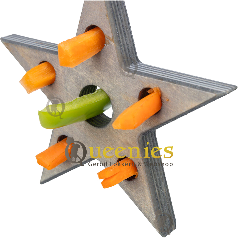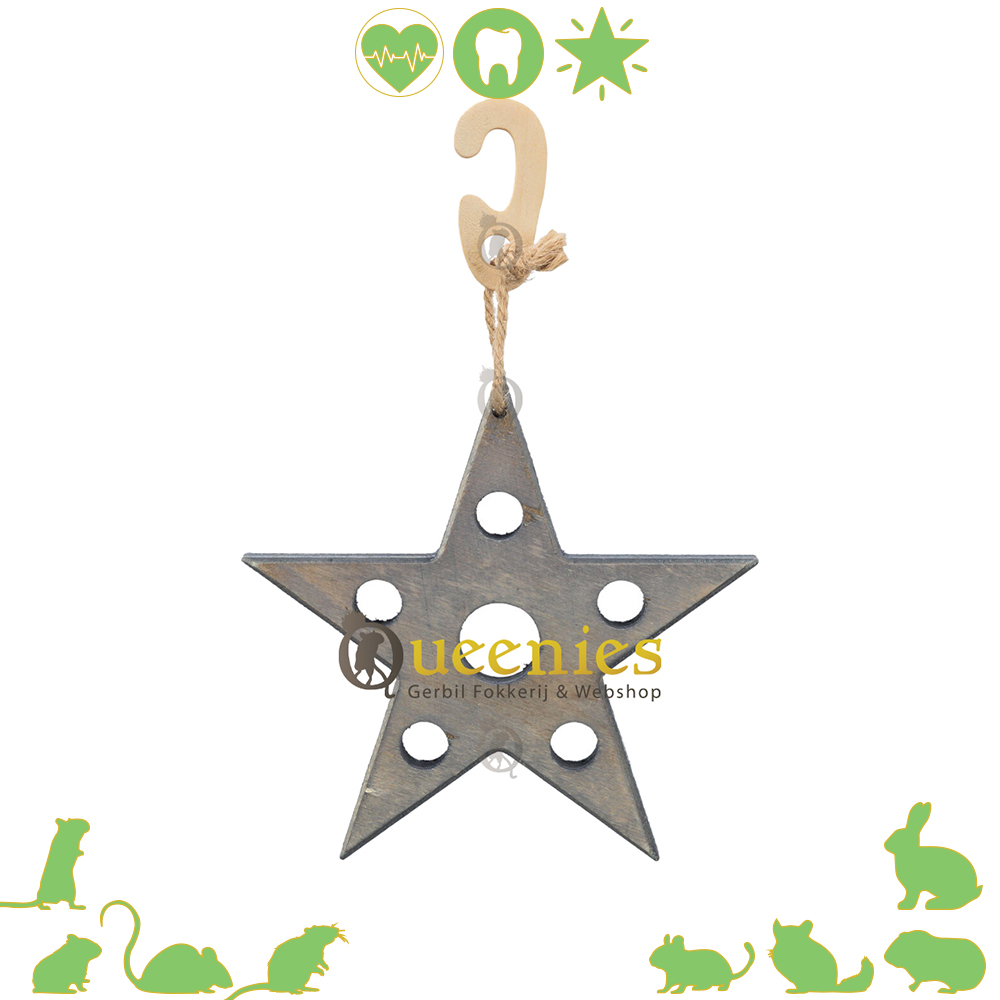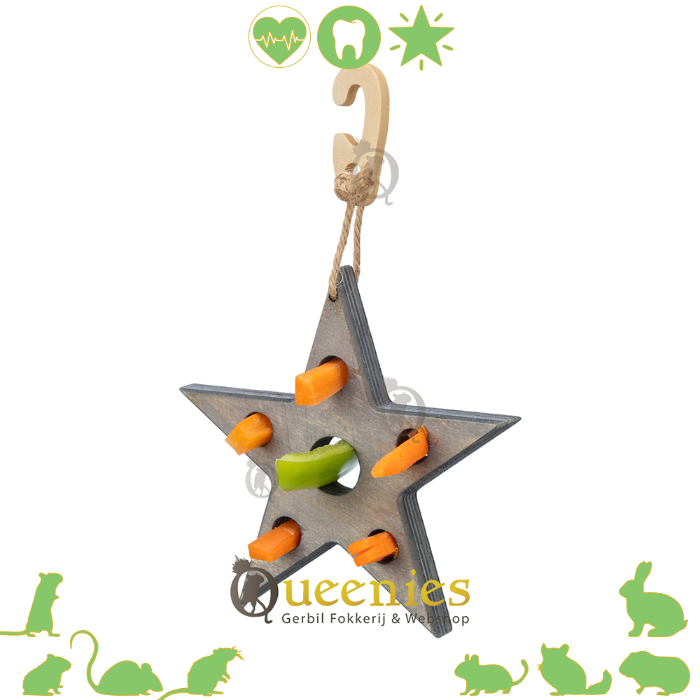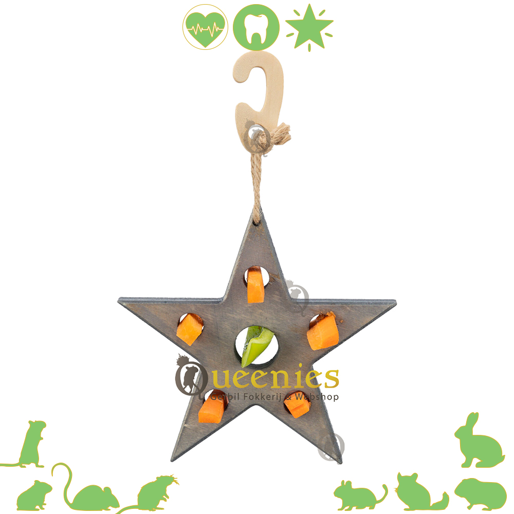 De Kerstster van hout biedt Knaagdieren en Konijnen een unieke en uitdagende speelervaring. Dit stervormige speeltje is gemaakt van stevig, knaagbestendig hout en is voorzien van meerdere openingen waarin je eenvoudig gezonde snacks kunt verstoppen, zoals wortels en komkommer. Knaagdieren, zoals hamsters, gerbils, en cavia’s, zijn van nature nieuwsgierig en houden ervan hun omgeving te verkennen. De Kerstster sluit perfect aan op dit natuurlijke gedrag door traktaties uitdagend te verstoppen. Dit speeltje stimuleert foerageergedrag en zorgt voor uren speelplezier.