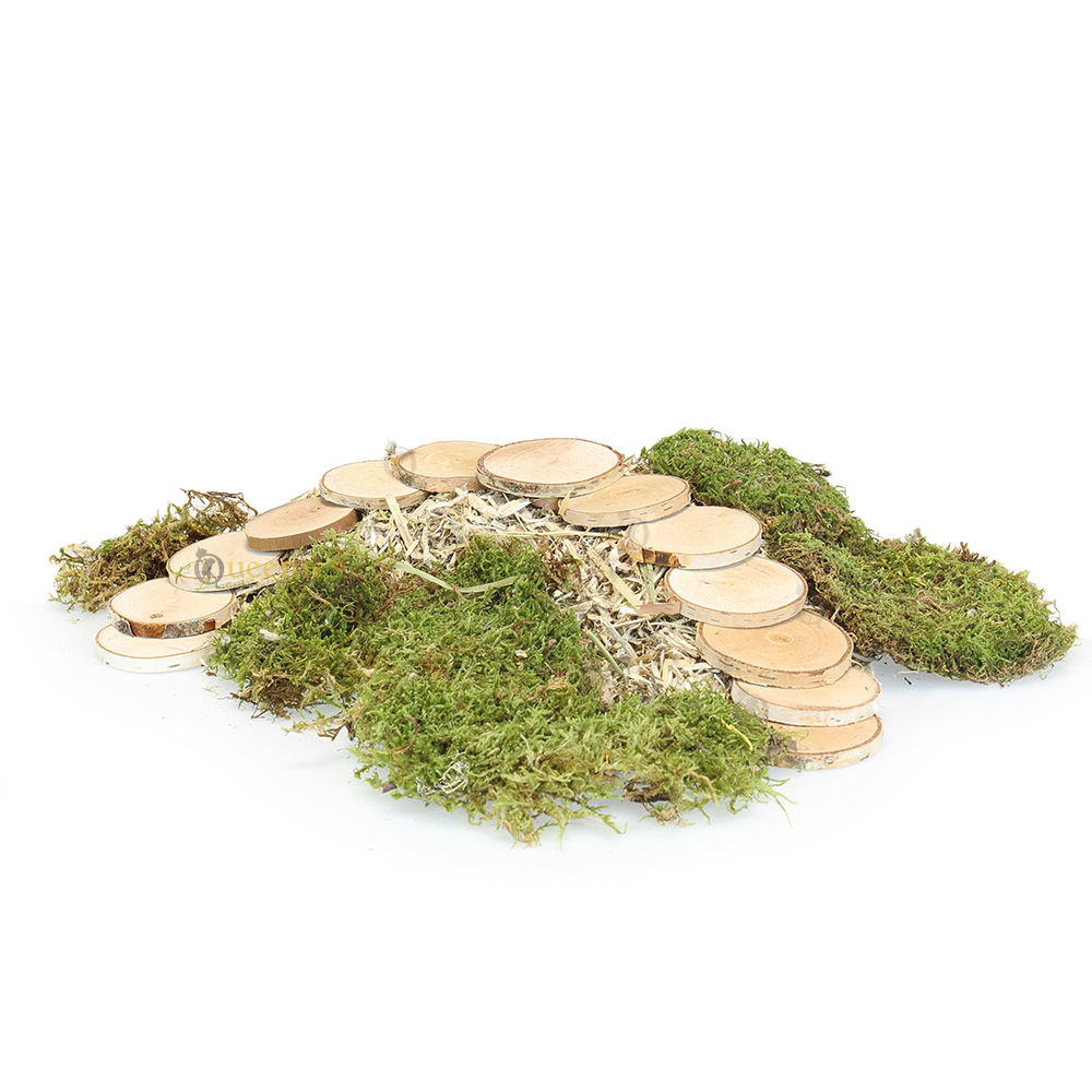 Deze Berken schijven 3-4 cm kunenn gebruikt worden voor DIY Knaagdier projecten. Prachtig in combinatie met andere Berkenschijven. Wissel de grotere Berkenschijf af met kleinere en of zelfde Ovale Houtschijven. Met de verschille formaten van de houtschijven kunt u de mooiste wenteltrappetjes maken voor in het Hamster terrarium. Het combineren van verschillende producten is misschien wel het sleutelwoord bij hamsterscaping. Een Trappetje maken naar een Hamsterhuisje en deze bedekken met gedroogd terrarium mos maakt al een wereld van verschil. Dor het maken van een uniek eigen trappetje doormiddel van Berken Schijven bent u creatief bezig en creeert u unieke producten! De berkenschijven combineren van grote schijven naar kleinere schijven en licht bedekken met mos zal een geweldig effect geven in de hamsterscaping. In onze knaagdierenwinkel vindt u veel verschillende producten die gebruikt kunnen worden in uw hamsterterrarium bij hamsterscaping.