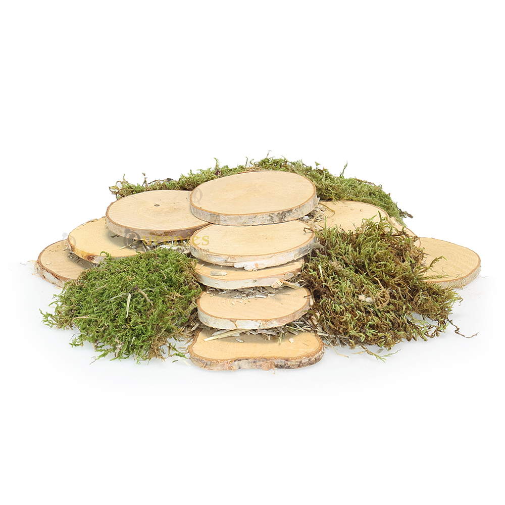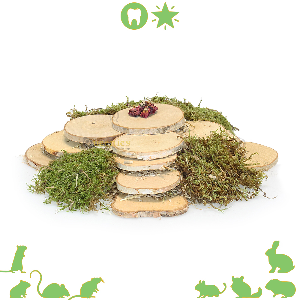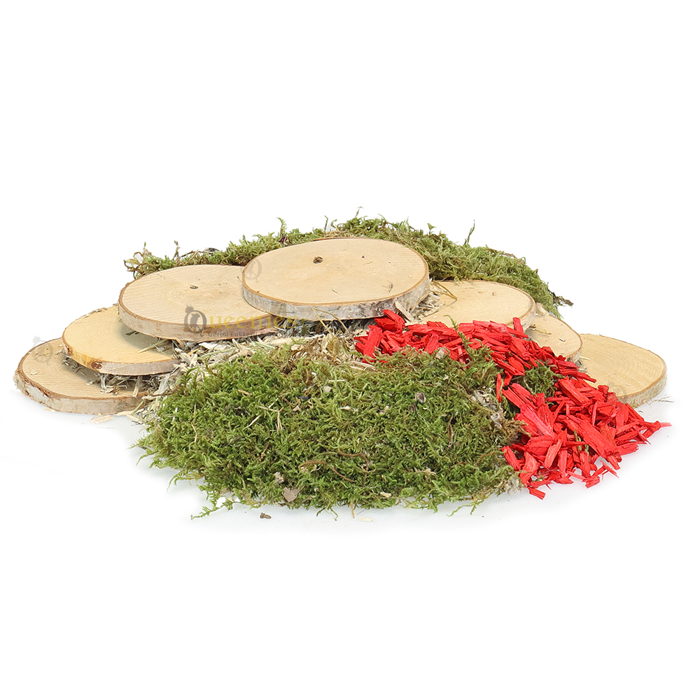 Met de verschille formaten van de houtschijven kunt u de mooiste wenteltrappetjes voor in uw terrarium maken. Net als de toren zonder spijkers. Het combineren van verschillende producten is misschien wel het sleutelwoord bij hamsterscaping. Een hamsterhuisje bedekken met gedroogd terrarium mos maakt al een wereld van verschil. De berkenschijven combineren van grote schijven naar kleinere schijven en licht bedekken met mos zal een geweldig effect geven in de hamsterscaping. In onze knaagdierenwinkel vindt u veel verschillende producten die gebruikt kunnen worden in uw hamsterterrarium bij hamsterscaping.
