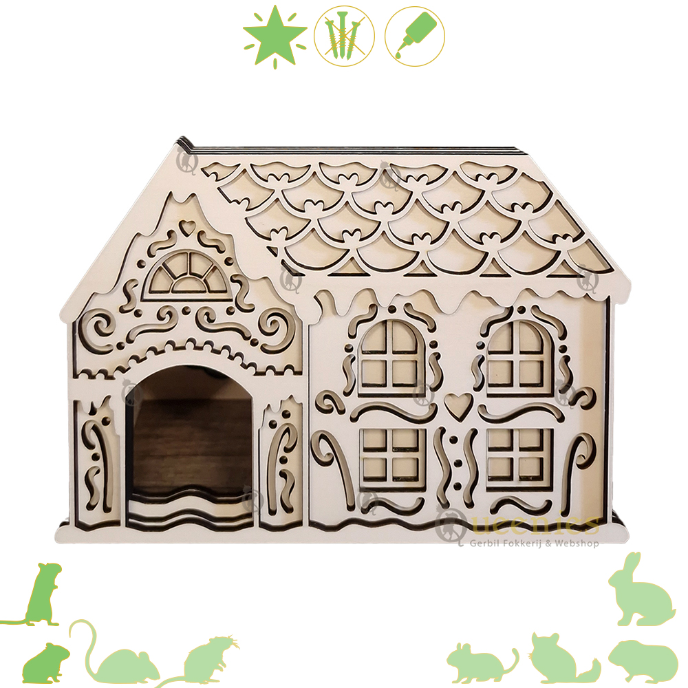 Dit houten Peperkoekenhuisje is niet alleen een prachtig kerststuk, maar ook een geweldige toevoeging aan je Hamsterscape. Creëer een feestelijke Hamsterscape door het Peperkoekenhuisje in het Terrarium van je Hamster te plaatsen, samen met andere winterse decoraties zoals miniatuur kerstbomen, sneeuwvlokken en sterren. Type Kerst in de zoekbalk om te zien welke producten allemaal geschikt zijn om een Kerstscape mee te maken.