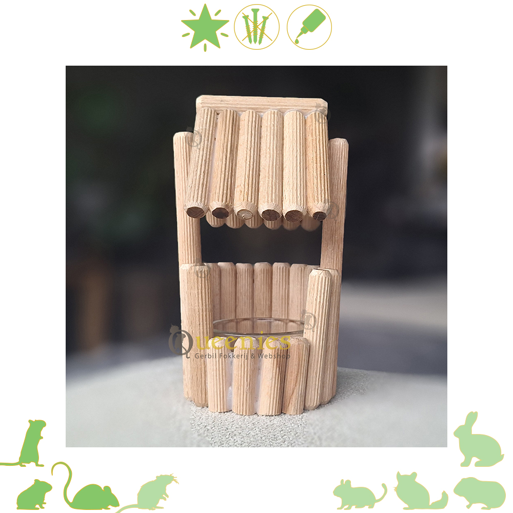 Wij bieden onze DIY Knaagdier artikelen kant en klaar aan! Je hoeft niet te zagen en niet te schuren, enkel nog te lijmen! Gebruik onze knaagdierveilige Houtlijm en plaats de deuvels netjes tegen elkaar. Zo eenvoudig is het! Bekijk ook onze