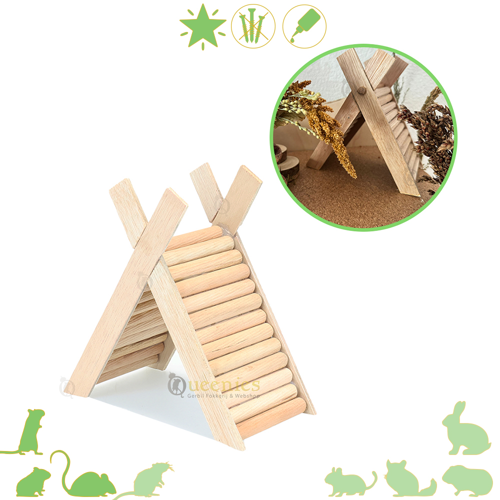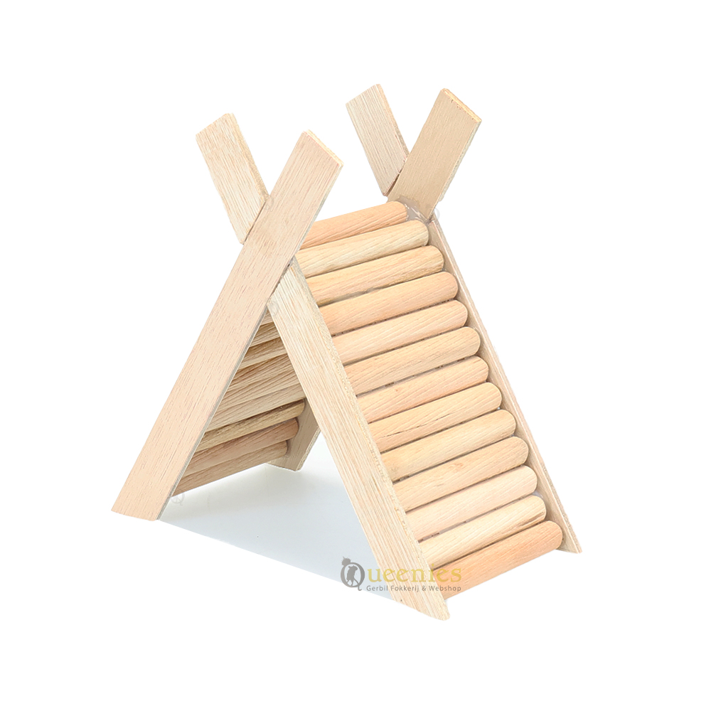 Met onze Tipi Tent heb je een uniek DIY Hamsterhuisje voor kleine Knaagdieren te pakken! Uniek en nergens anders verkijgbaar wat geweldig zal staan in iedere Hamsterscaping. Onze DIY Tipi Tent voor Hamsters wordt compleet geleverd inclusief de deuvels. Je hoeft het enkel nog in elkaar te lijmen met onze Houtlijm. Met dit zelfbouw Hamsterhuisje creeer je een unieke Hamsterscape look en een leuk project om met de kids dit in elkaar te zetten wanneer het buiten regent of stormt.