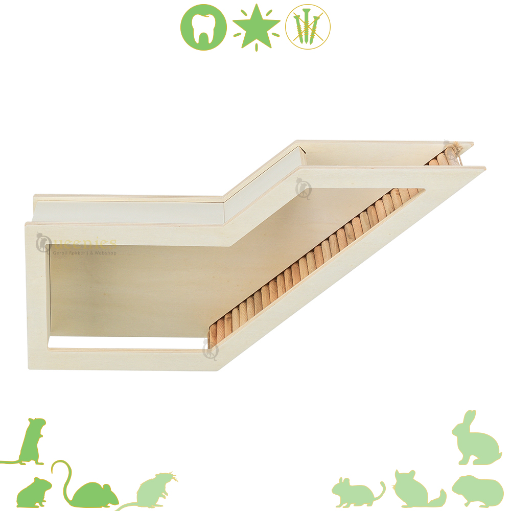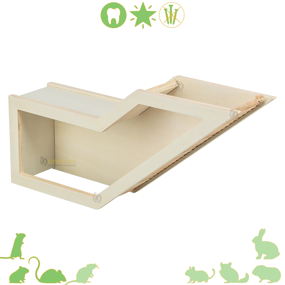 Afmetingen: 36 × 17 cm Materiaal: Onbehandeld hout Eigenschappen: Stevig, natuurlijk, makkelijk te plaatsen, kant en klaar Geschikt voor: Gerbils, dwerghamsters, goudhamsters en muizen
