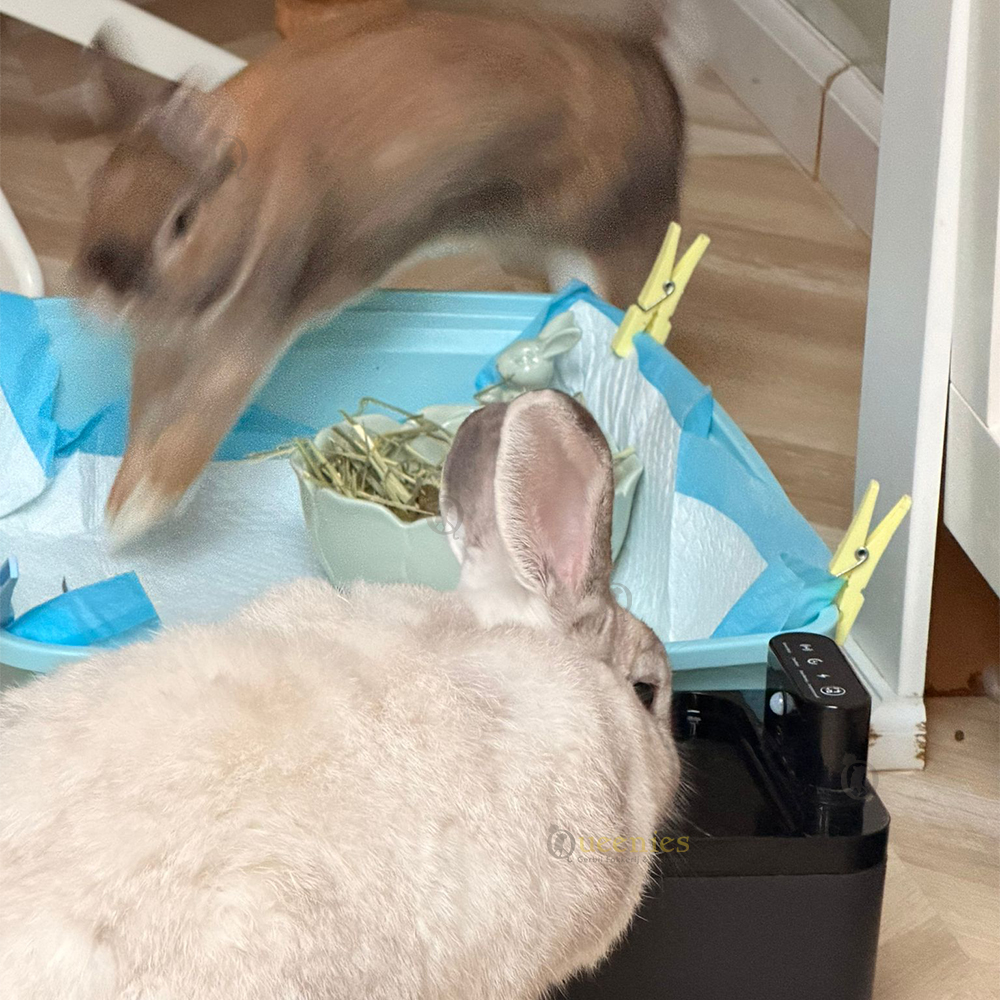 De Draadloze Drinkfontein is ideaal voor konijnen en kleine knaagdieren die graag stromend water drinken. Het zachte kabbelende water trekt hun aandacht en stimuleert natuurlijk drinkgedrag. De fontein werkt zonder kabels en biedt een stille, hygiënische manier om altijd vers water aan te bieden.