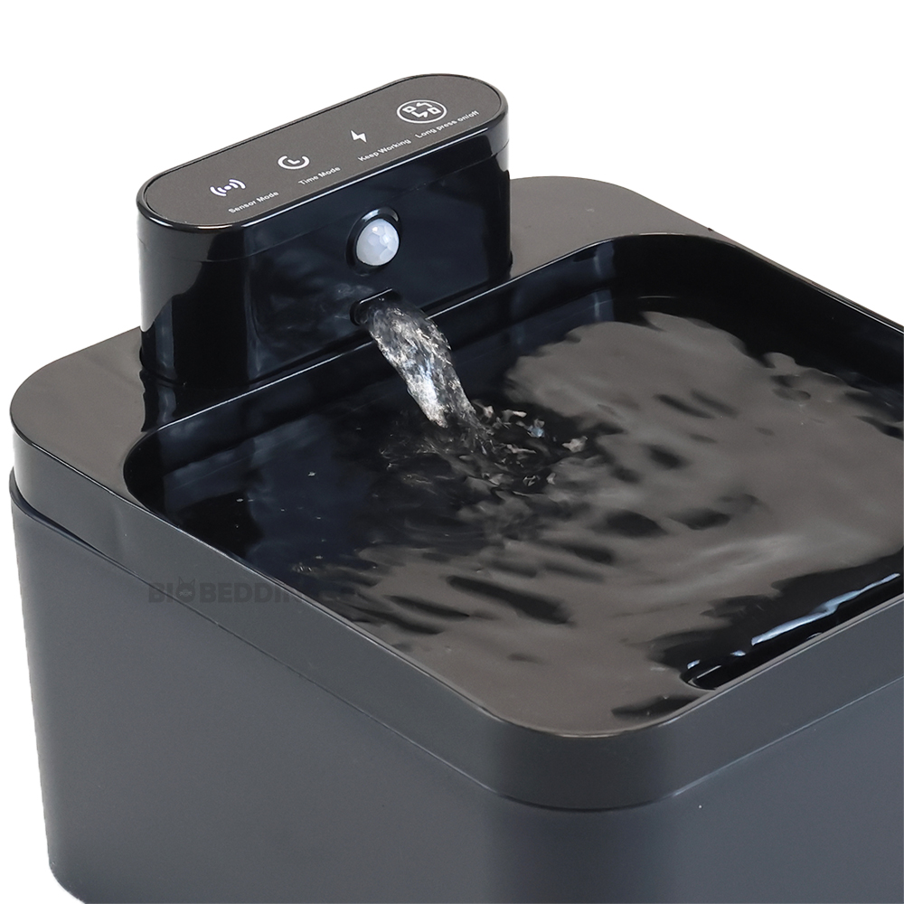De ingebouwde sensor reageert op beweging binnen een afstand van anderhalve meter. Zodra een dier in de buurt komt, activeert de fontein automatisch de waterstroom. Dit duurt ongeveer dertig seconden en zorgt dat het water vers blijft zonder verspilling van energie.