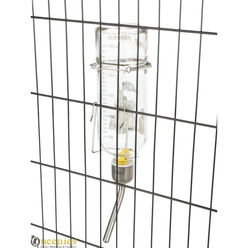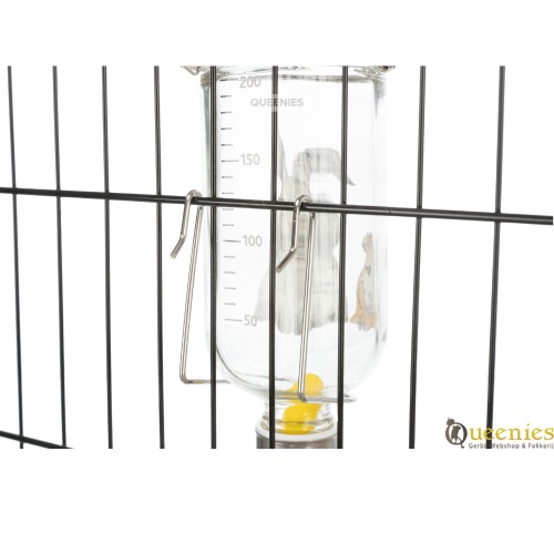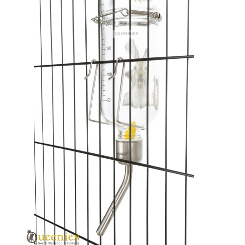 Het ophangen van een glazen drinkfles is doorgaans wel ingewikkeld in een glazen Knaagdieren Terrarium / Gerbilarium. Deze Glazen drinkfles past niet in de Magnetische drinkfleshouder van Queenies. De diameter is hiervoor te dik waardoor het niet in de houder zal glijden, maar op de houder zal staan. Dit is minder wenselijk doordat het dan ook van de houder gegooid kan worden.