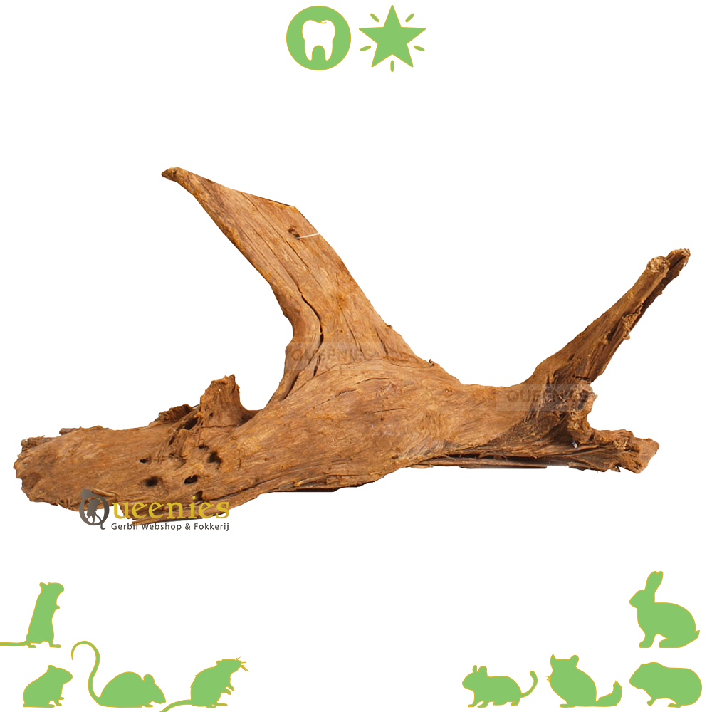 Mangrove wortel hout is een fantastich product als het gaat om versteviging van de ondergrondse gangen die de Gerbils zelf hebben gegraven. Ook goed voor het slijten van de tandjes en nageltjes waarvoor deze Mangrove wortelhout uiterst geschikt voor is zonder dat de Mangrove wortel er onder zal lijden of snel kapot geknaagd zal worden. Het is namelijk gemaakt van zeer stevig hout wat praktisch onverwoestbaar is voor Gerbils of Degoes. U kunt het kopen als mooi decoratieve doeleinde ( hoeft niet eens perse voor een Terrarium / Gerbilarium te zijn ) maar ook als groot knaaghout of knaagblok voor uw knaaggrage knaagdiervriendjes.