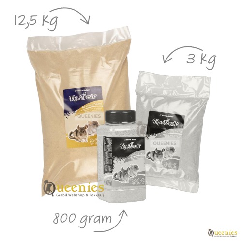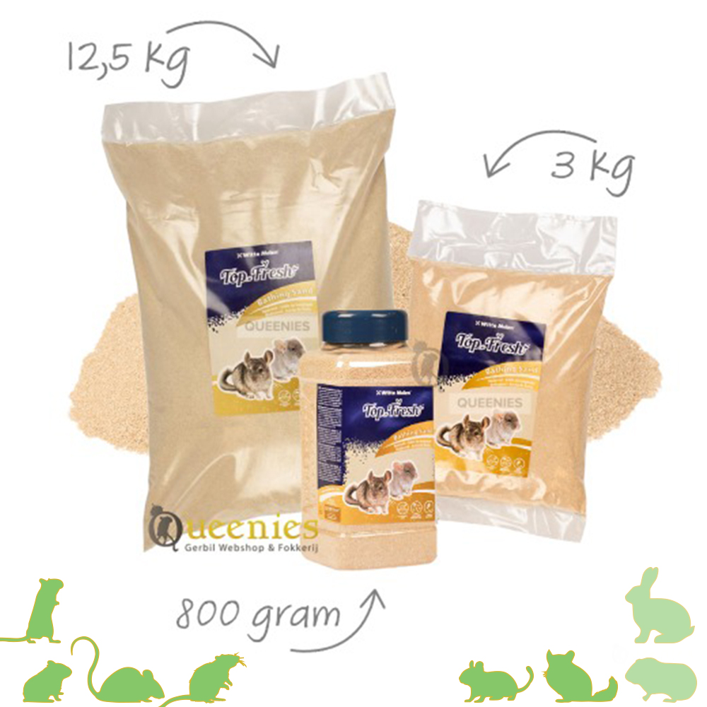 De structuur van Chinchilla Badzand 12,5 KG is fijner van samenstelling zodat het gemakkelijk tussen de haren vandaan komt. Hierdoor stoft het zand wel wat meer dan het badzand van Supreme bijvoorbeeld. Het Chinchilla Badzand 12,5 KG is erg prettig zand wat lang goed blijft en is verpakt in een draagbare zak. In onze Gerbilfokkerij gebruiken wij ook dit zand. Voor Gerbils is badzand hetzelfde als de noodzaak van eten en drinken. Wanneer Gerbils geen badzand hebben kunnen zij hun vacht niet verzorgen. Ze zullen dan een vette vacht krijgen die ze niet meer schoon krijgen. Deze aspecten gelden ook voor Chinchilla's en Degoes, in veel mindere mate voor Hamsters en muizen.