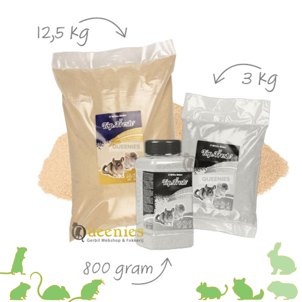 Op sommige verpakkingen van knaagdieren badzand staat dat het badzand 10 minuten per dag aangeboden mag worden voor uw knaagdier. Wij van Queenies begrijpen dit advies niet goed en zijn het hier ook niet mee eens. Wij zien geen enkele reden om het zand niet de hele dag aan te bieden in uw knaagdieren terrarium. Het zand is naast hun douche ook vaak het toilet voor uw knaagdier. Wel zo prettig dat ze naar het toilet kunnen wanneer zij dit willen, of hun vacht kunnen verzorgen wanneer uw knaagdier hier de behoefte naar heeft. U kunt het badzand dus de gehele dag in uw Gerbilkooi laten staan. Vervang het badzand tijdig