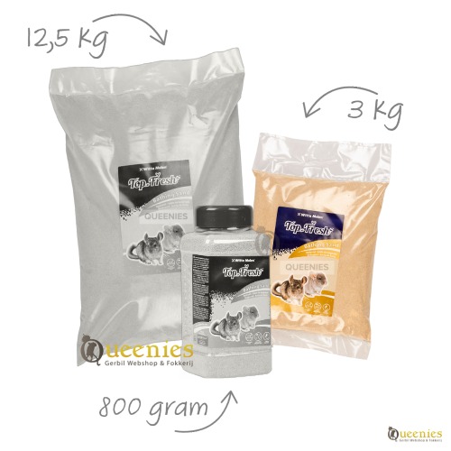 De structuur van Chinchilla Badzand 3 KG is fijner van samenstelling zodat het gemakkelijk tussen de haren vandaan komt. Hierdoor stoft het zand wel wat meer dan het badzand van Supreme bijvoorbeeld. Het Chinchilla badzand 3 Kg is erg prettig zand wat lang goed blijft en is verpakt in een draagbare zak. In onze Gerbilfokkerij gebruiken wij ook dit zand. Voor Gerbils is badzand hetzelfde als de noodzaak van eten en drinken. Wanneer Gerbils geen badzand hebben kunnen zij hun vacht niet verzorgen. Ze zullen dan een vette vacht krijgen die ze niet meer schoon krijgen. Deze aspecten gelden ook voor Chinchilla's en Degoes, in veel mindere mate voor Hamsters en muizen.