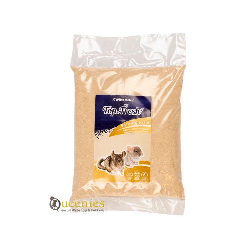 Vachtverzorging voor Chinchilla's, Degoes en natuurlijk Gerbils. Badzand voor alle knaagdieren van het merk 'Witte Molen'. Badzand met een fijne korrel die fluweelzacht aanvoelt en de vacht van huis knaagdier verzorgd. Dit badzand ontdoet vet, vuil, vocht en huidschilfers uit de vacht van uw huisdier wat de vacht weer zal doen glanzen. Dit badzand heeft een hoog absorberende werking. Ook geeft badzand verkoeling in hete en zomerse dagen en zitten er essentiele mineralen in het badzand. Dit kunt u herkennen wanneer de Gerbils aan het badzand gaan likken. Zij likken dan de mineralen uit het zand. Gerbils doen dit vaak als zij net vers badzand hebben gehad. Badzand wat is ontwikkeld voor steppe dieren. Het zand heeft veel weg van het zand wat in de Steppe ligt. Ook fluweelzacht met een fijne korrel. Daardoor uitermate geschikt voor Gerbils, hamsters of andere soorten renmuizen.