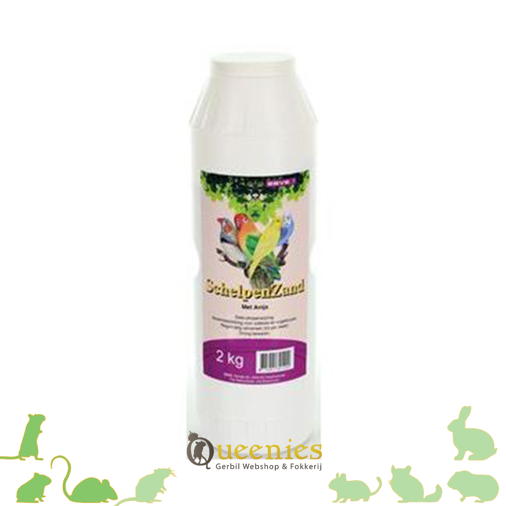 ESVE volièrezand bevordert de hygiëne in de vogelkooi. De schelpjes hebben een dubbele functie; enerzijds als molensteen voor het vermalen en verteren van granen, en anderzijds als calciumbron en bron van vele andere mineralen voor sterke botten en de opbouw van veren. De oesterschelpjes zijn gemaakt van gebroken, fossiele oesterschelpen, de allerbeste calciumbron in de voeding. 100% door het dier verteerbaar. De calcium komt geleidelijk en langzaam beschikbaar voor het dier. Alle grondstoffen zijn gedesinfecteerd doordat ze onder zeer hoge temperatuur zijn gedroogd en verhit. Met anijs, voor een frisse geur. Het product is stofvrij. Schelpenzand als badzand voor Gerbils kan gebruikt worden, maar werkt in de praktijk niet fijn. Het klontert veelste erg, waardoor u dagleijks het zand zal moeten verversen. Het ruikt wel lekker, het heeft ook de werking voor de huid, bovengenoemde calciumbron geldt ook voor gerbils, maar is van ondergeschikt belang.