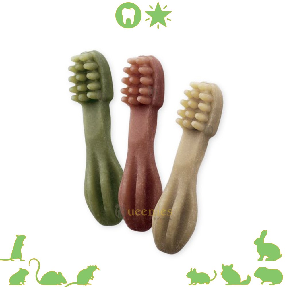 Een Gerbil tandenborstel geschikt voor Knaagdieren en Konijnen. Het is gemaakt van natuurlijke materialen vrij van tarwe, gluten en granen. Whimsee is voor knaagdieren goed om hun natuurlijke instinct tot knagen aan te boren. Hierdoor slijten tanden beter af en verkom je gedeeltelijk tandproblemen. Deze Whimzees producten zouden dus ten alle tijde (zeker bij een hamsters ) ter beschikking moeten zijn. Tijdens het kauwen op deze snack wordt tandsteen en plak ook nog eens verminderd. De snack is lichtverteerbaar. Voor deze lage prijs kunt u het altijd eens proberen. Baat het niet schaad het ook niet.