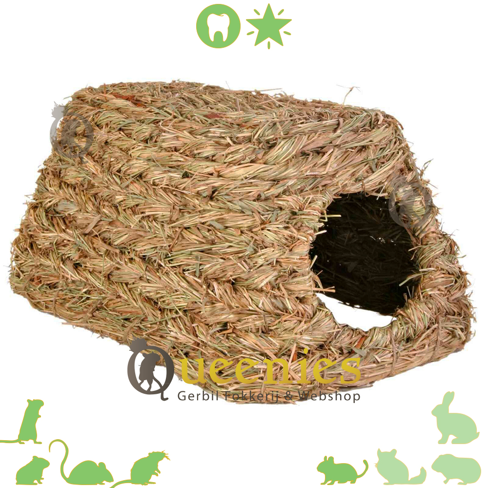 Het is belangrijk voor Knaagdieren om zich veilig te voelen. In de natuur zijn Knaagdieren zoals Gerbils normaal prooidieren. Daarom hebben Gerbils behoefde om zich te verstoppen. Daarmee verschuilen ze zich voor roofdieren. Dit komt natuurlijk niet voor in een Gerbil verblijf. Maar toch blijven de Gerbils dit instinct houden. Daarvoor is het Grasnest ideaal. Het Gasnet is tegelijkertijd speelgoed maar ook een schuilplek. Zoals eerder al genoemd is het Grasnest zoals de naam ook al zegt gemaakt van Gras. Omdat het van Gras gemaakt is kunnen Gerbils of andere Knaagdieren zoals Hamster hier veilig aan knagen. Het Grasnest heeft al meerdere ingangen, maar het is geen probleem als Gerbils of Hamsters zelf nog een ingang maken.