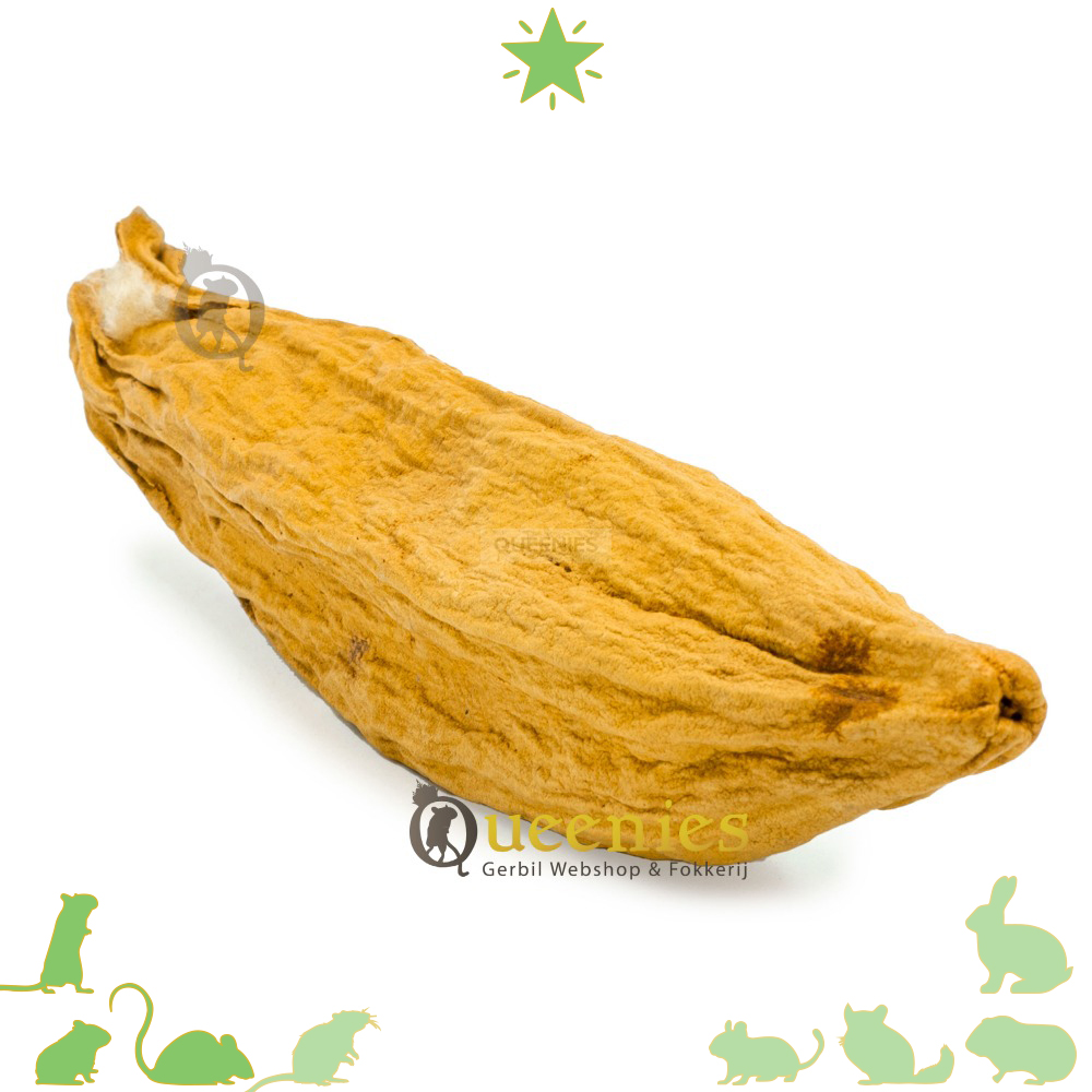 Deze mooie peulvrucht wat de basis is van deze heerlijk zeide zachte Kapok nestmateriaal kunt u ook los kopen. Een uitdagend speeltje voor Gerbils en hamsters om het Kapok uit de noot te kunnen krijgen. De Kapok verbergt nog meer verassingen voor uw lieveling. Naast de zachte katoenachtige inhoud waar een heerlijk zach en warm nest mee gemaakt kan worden, zitten er ook nog smakelijke zaadjes in die heerlijk zijn om op te eten voor knaagdieren en Vogels.