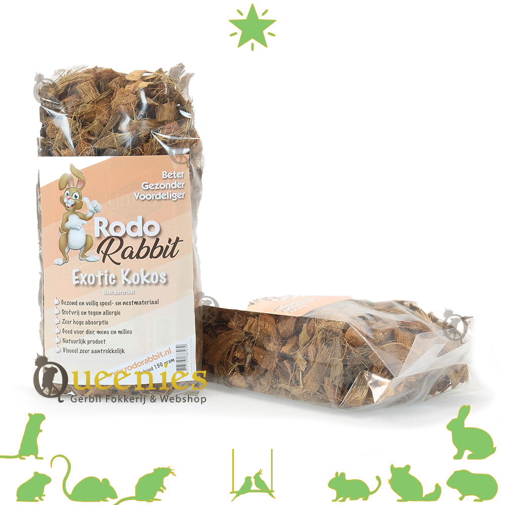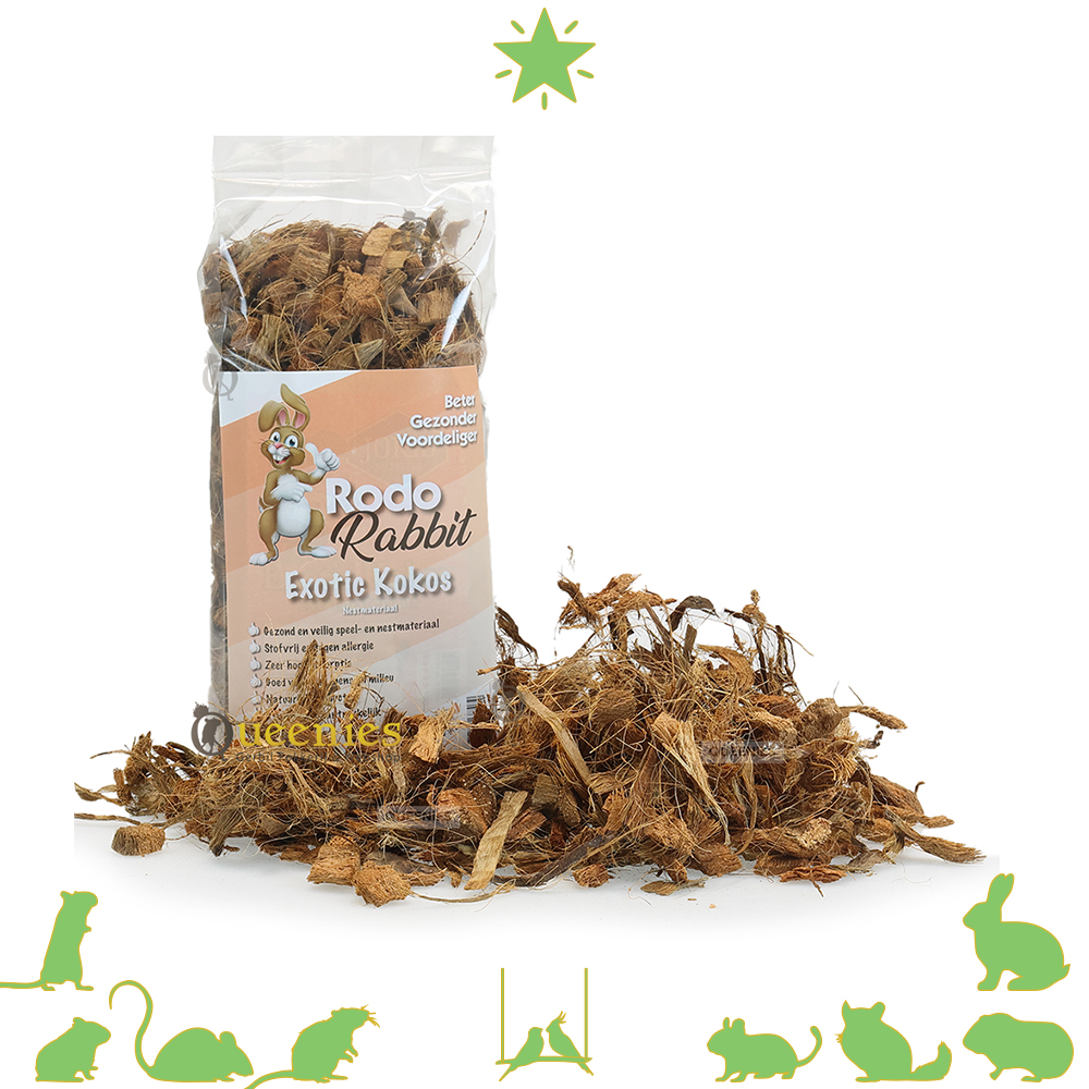Niet alleen is het Kokos nestmateriaal gemaakt van natuurlijke producten, het is ook stofvrij, kiemvrij en kan veel uitzetten wanneer de Vogels of Knaagdieren de kokosbast gaan lospeuteren. Voor Knaagdieren met gevoelige luchtwegen zoals Ratten is dit product ideaal vanwege het lage stofgehalte. Bij gebruikt van het verkeerde nestmateriaal kan al snel voor ademhalingsproblemen zorgen bij Ratten. Het nestmateriaal heeft ook een erg hoog absorptievermogen. Als er iets van vocht op het nestmateriaal komt zal dit worden opgenomen. Op deze manier blijf het Terrarium schoner en komt er minder geur van het nestmateriaal af.