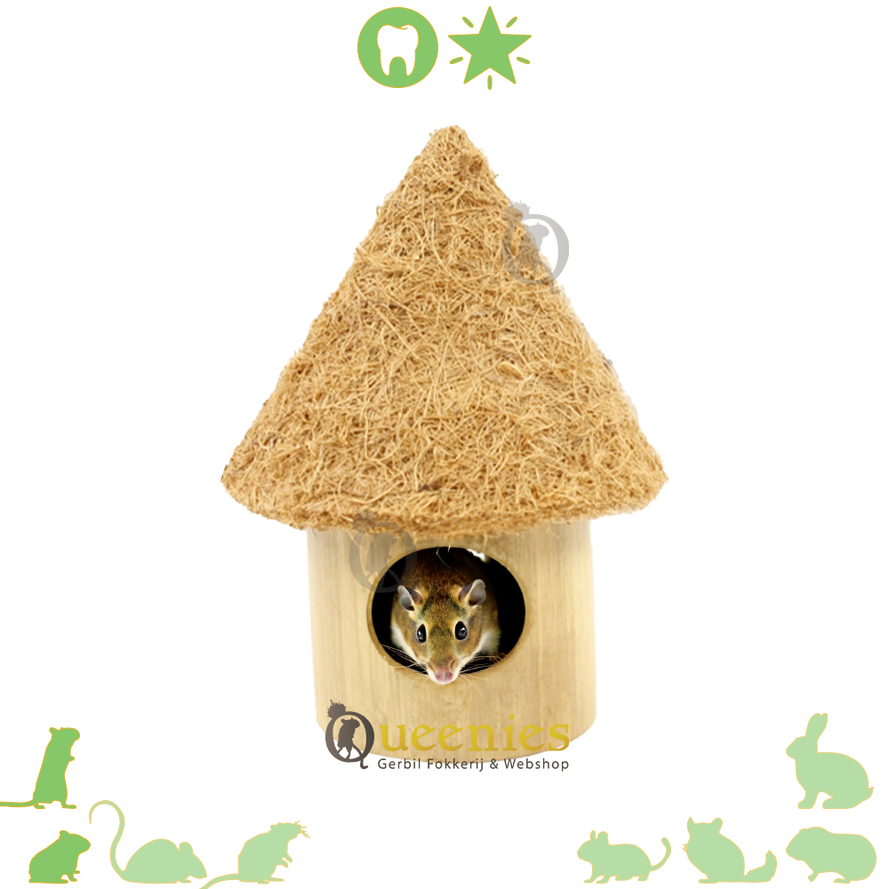 Nature First Bamboe Tiki Hut Knaaghuis 13x17x17 cm In dit schattige houten huisje kan uw Gerbils zich verstoppen, tot rust komen en knagen. Doordat de stam van bamboehout is gemaakt kunnen de gerbils er zich helemaal uitleven en hun tanden flink in het hout zetten. Nadat het dak weg is, blijft er een tunnel van bambo over die nog jaren mee zal gaan.
