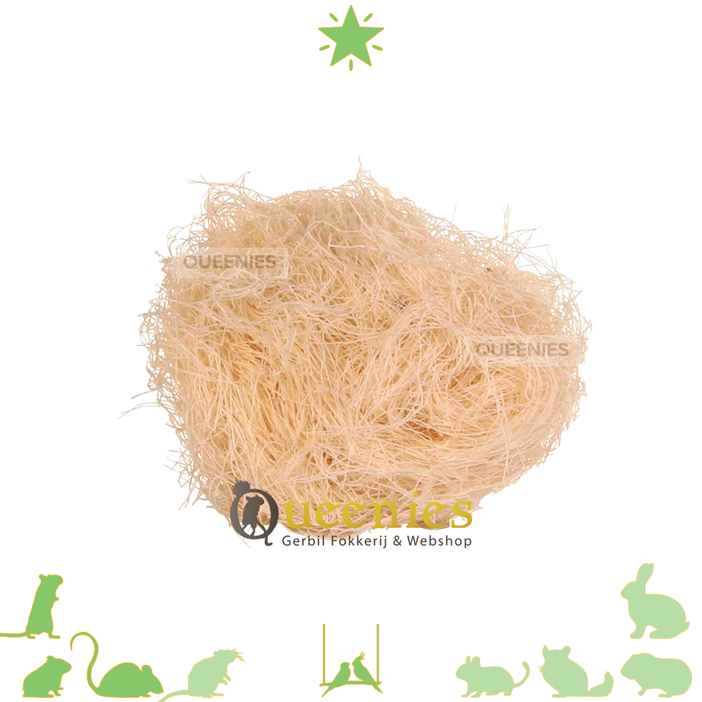 Dit blanke nestmateriaal van Sharpi is gemaakt voor vogels, maar kan ook uitstekend gebruikt worden bij gerbils of andere kleine knaagdieren.Het zachte katoen is zeer geschikt om nesten mee te bouwen.Gerbils vinden het heerlijk om nestmateriaal te verzamelen, zorg dat er altijd voldoende van aanwezig is in uw gerbilarium.