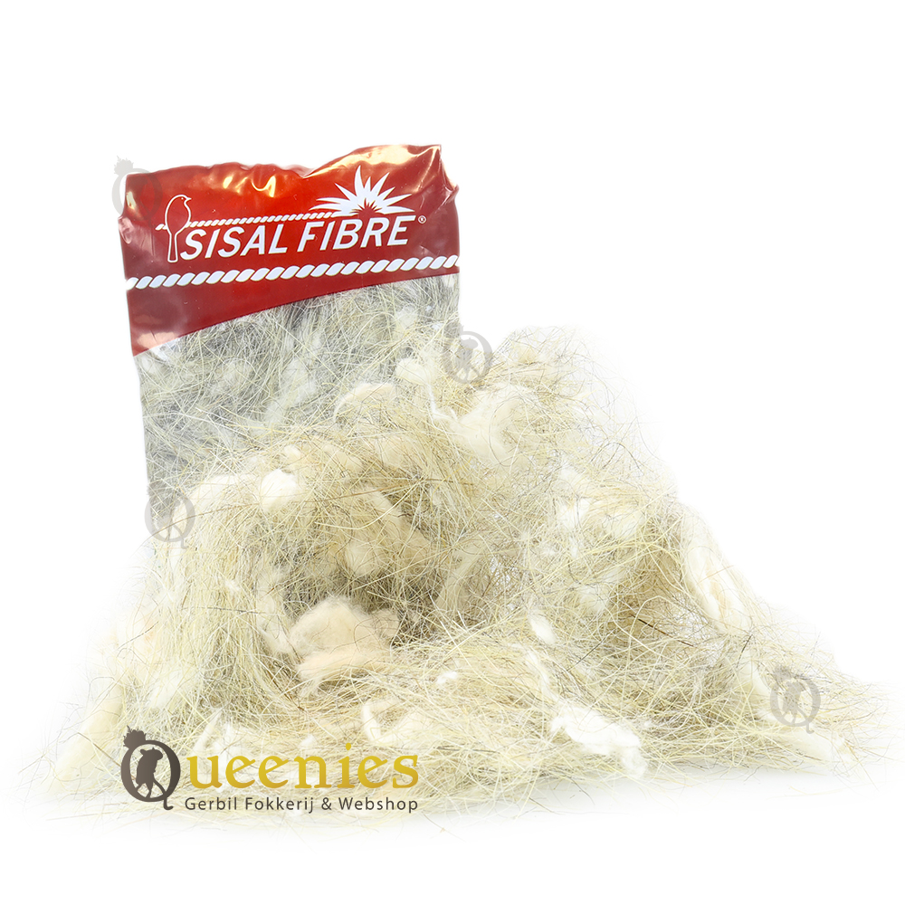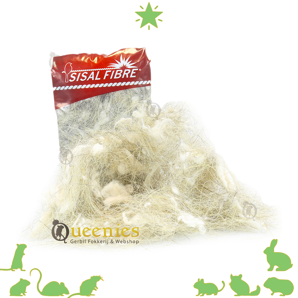 Sisalvezel is gemaakt van de bladeren van de Agave sisalana plant. De natuurlijk vezels zijn heel erg geschikt om nestmateriaal van te maken. Ook omdat de vezels om een natuurlijke manier verwerkt worden is het niet giftig voor Knaagdieren, stoffen die normaal schadelijk zijn voor dieren zijn hierin niet verwerkt. De vezels voelen zacht aan waardoor het een comfortabel nest maakt voor Knaagdieren. Zorg wel dat er voldoende nestmateriaal aanwezig is in het Terrarium. Lijkt het weinig of ziet het er vuil uit? Vul het aan of vervang dan het Sisal Fibre nestmateriaal.