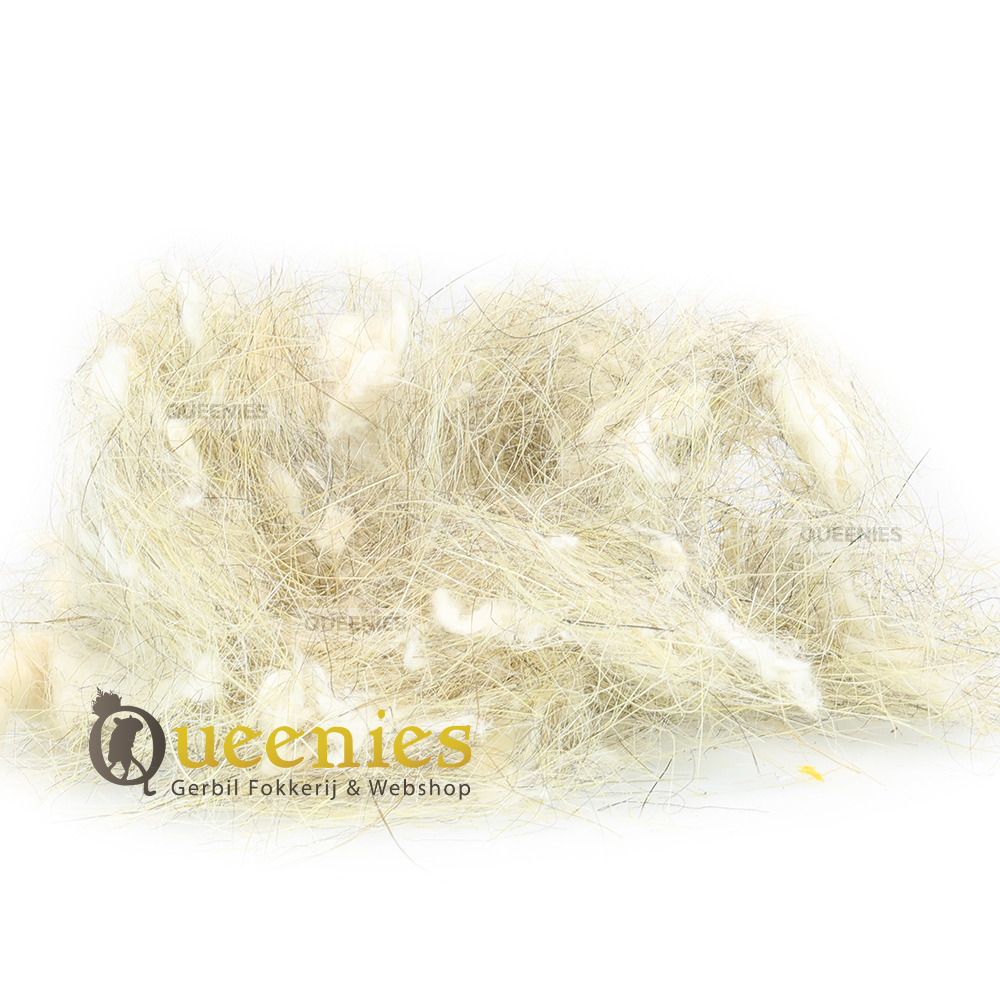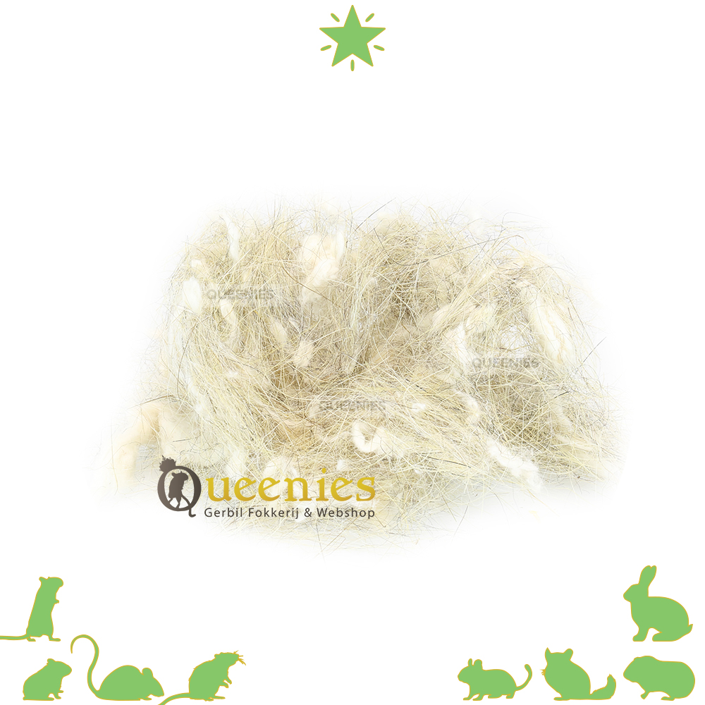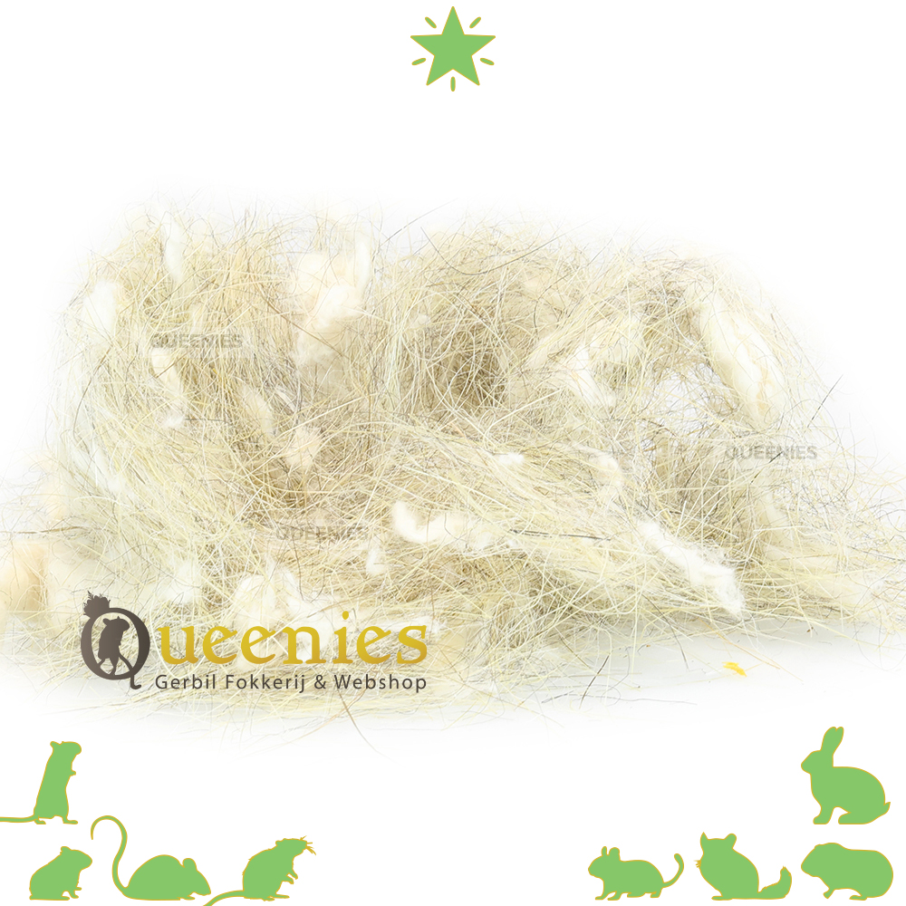 Sisal Fibre nestmateriaal 50 gram is comfortabel voor Knaagdieren om een nest mee te maken. Knaagdieren zoals Gerbils, Hamsters en Muizen zijn in de natuurlijk prooidieren. De Gerbils maken nesten om zicht te beschermen tegen roofdieren, weersomstandigheden en een veilige plek te hebben om hun jongen op te voeden. Daarom is het belangrijk om materialen aan te bieden waarmee Gerbils en andere Knaagdieren nesten kunnen maken, dit zit nog steeds in hun natuurlijke instinct. Door genoeg van Sisal Fibre nestmateriaal aan te bieden in een Gerbilarium zullen de Gerbils vanaf een nest daarvan gaan maken.