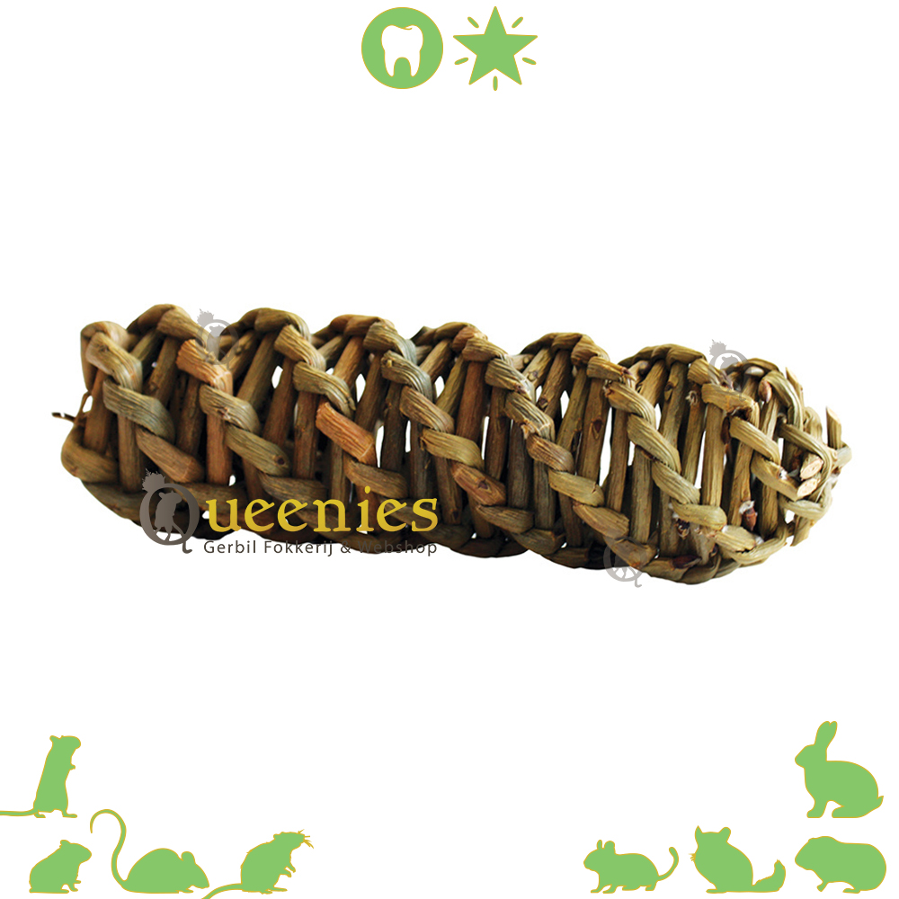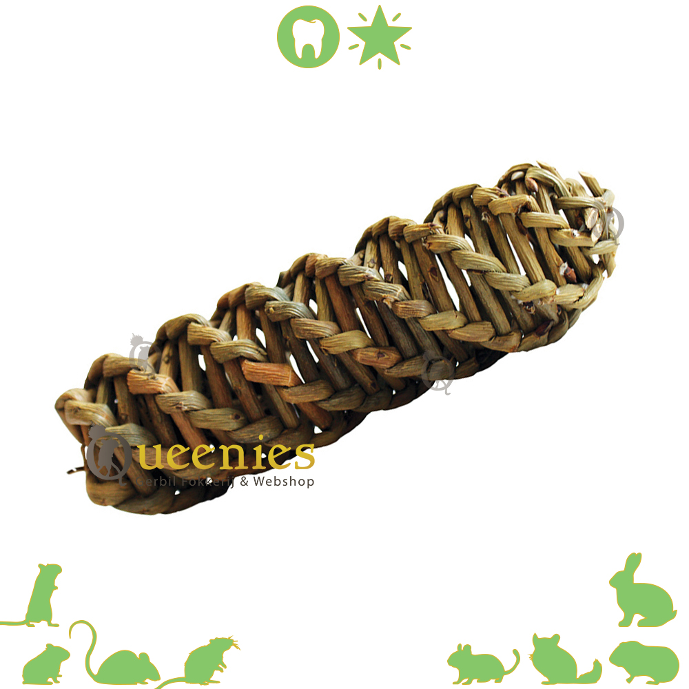 Inhoud: wordt geleverd per 1 stuk Afmeting: 19 cm Diameter: Ø 3 cm Materiaal: Gevlochten wilgentakken Geschikt voor: Alle Knaagdieren en Konijnen